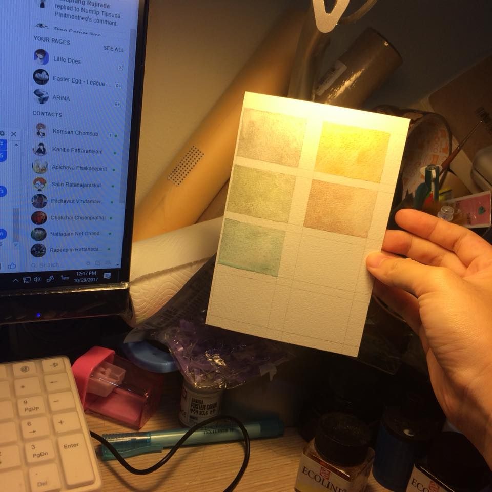 ลองระบายลงบนกระดาษฟาบริอาโน่กึ่งหยาบ และถ่ายตอนที่ยังไม่แห้งมา