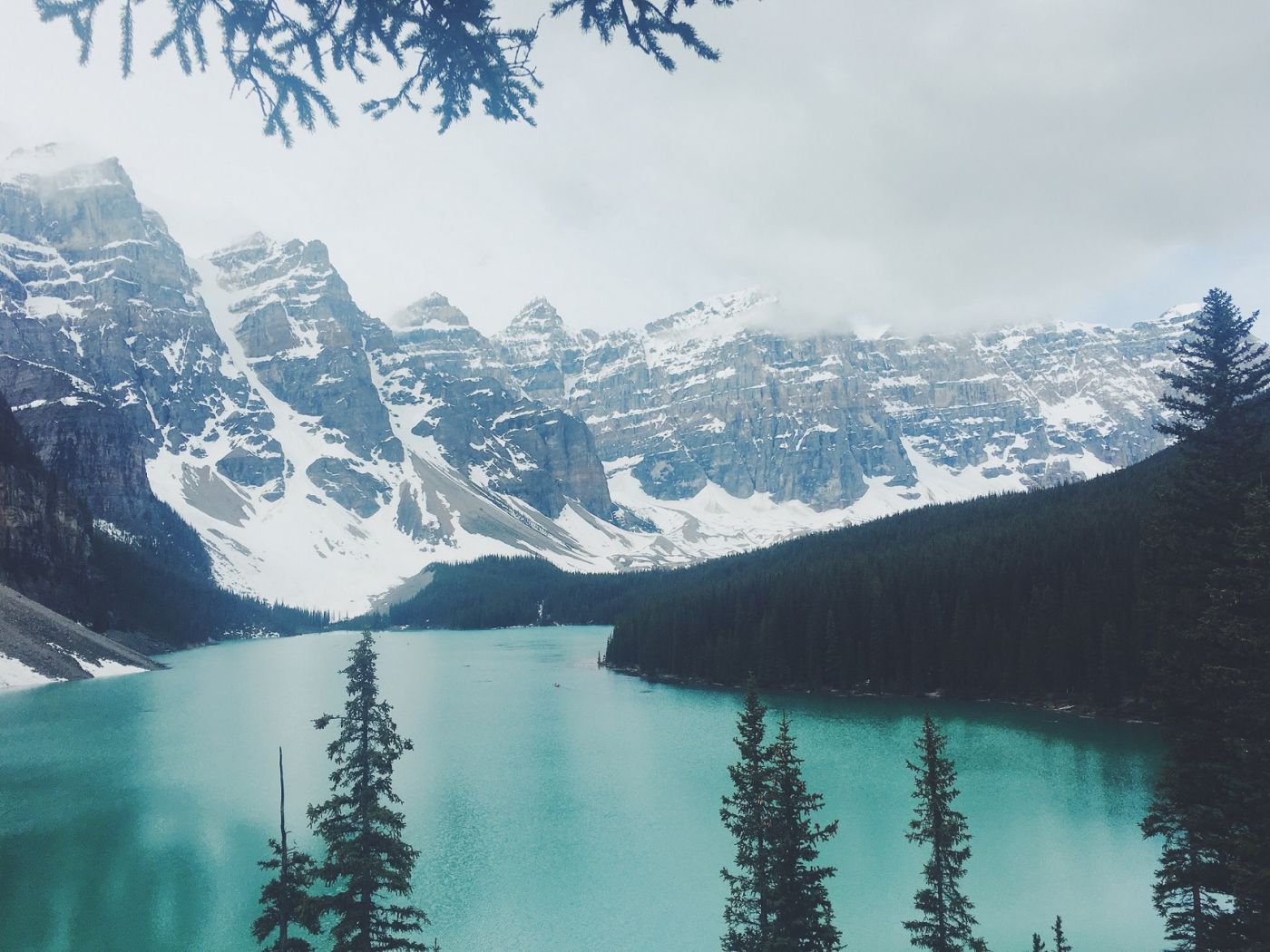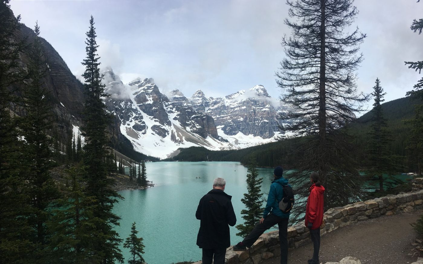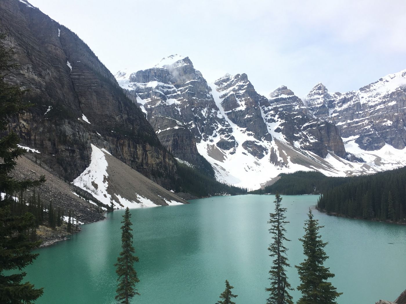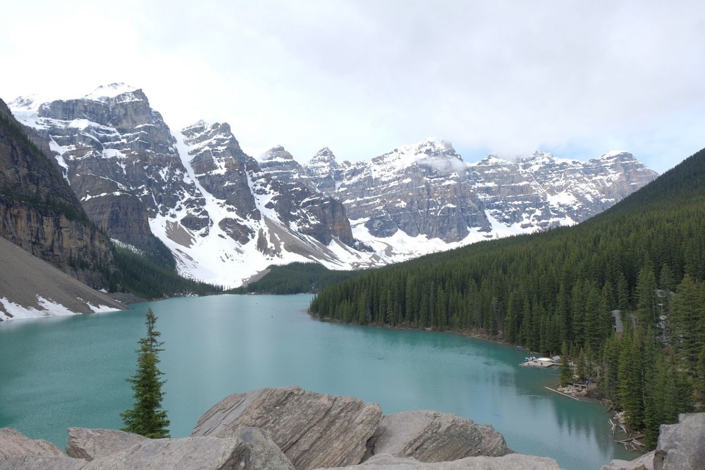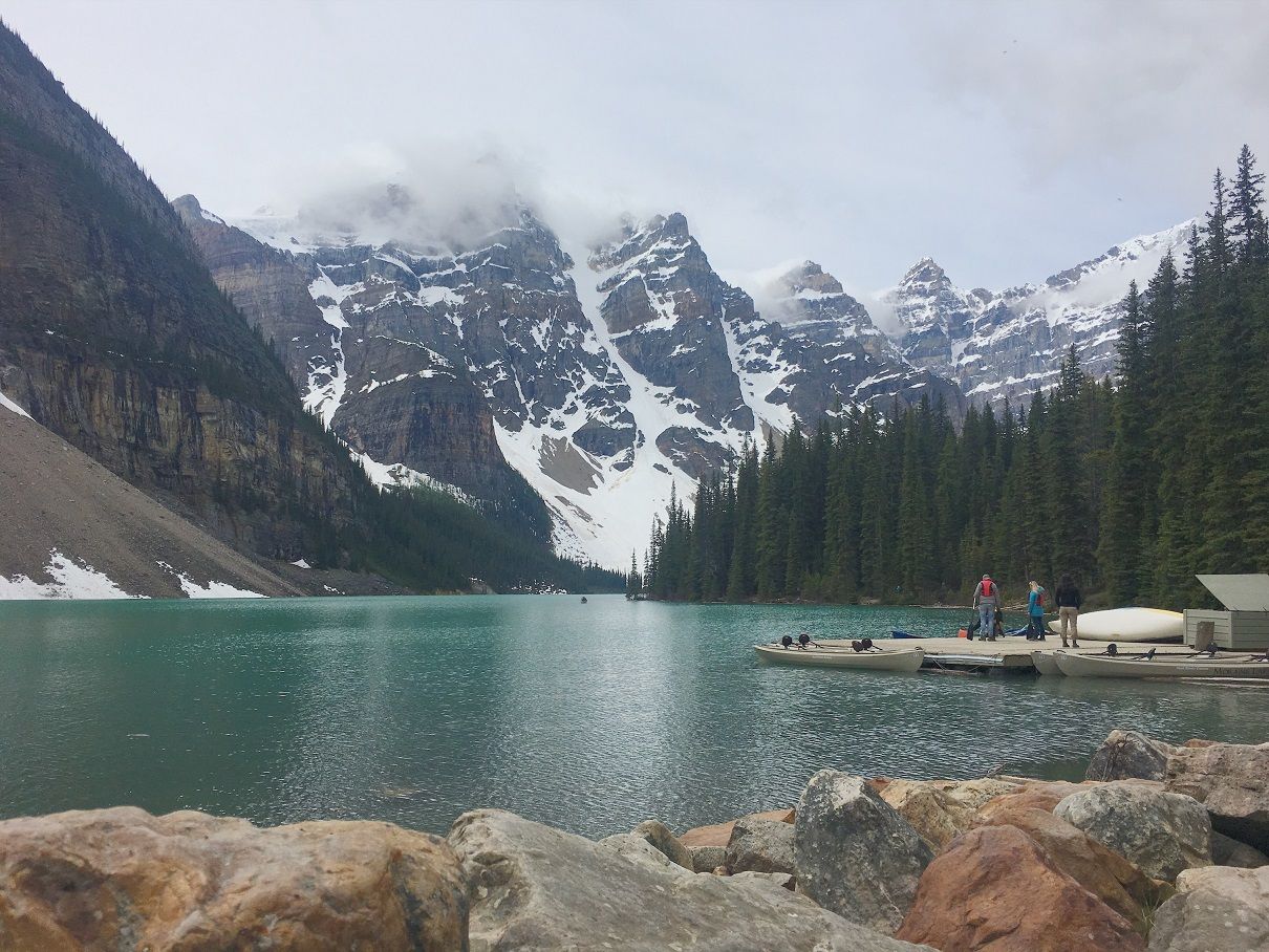 ในแบมฟ์อากาศดี แต่พอขับออกมาสักพักก็รู้สึกว่าไม่ดีล่ะ มันครึ้มๆ เมฆเยอะ เหมือนฝนจะตก แล้วตอนแยกเข้าโมเรนเลคก็ยิ่งรู้สึกครึ้มมาก และฝนก็ตกลงมานิดนึงแล้วก็หยุด ถึงแม้อากาศจะหม่นๆ แต่ก็ดีแค่ไหนแล้วที่ฝนไม่ตกที่โมเรนเลค นี่พยายามคิดบวกสุดๆ ถึงแม้จะอากาศไม่ดีโมเรนเลคก็ยังสวยมาก ดีใจที่ได้มาเห็นอะไรแบบนี้ ที่สำคัญโมเรนเลคเปิดให้เข้าแค่ช่วงมิถุนา-ตุลา