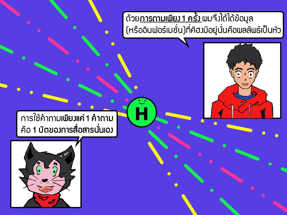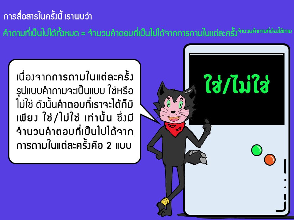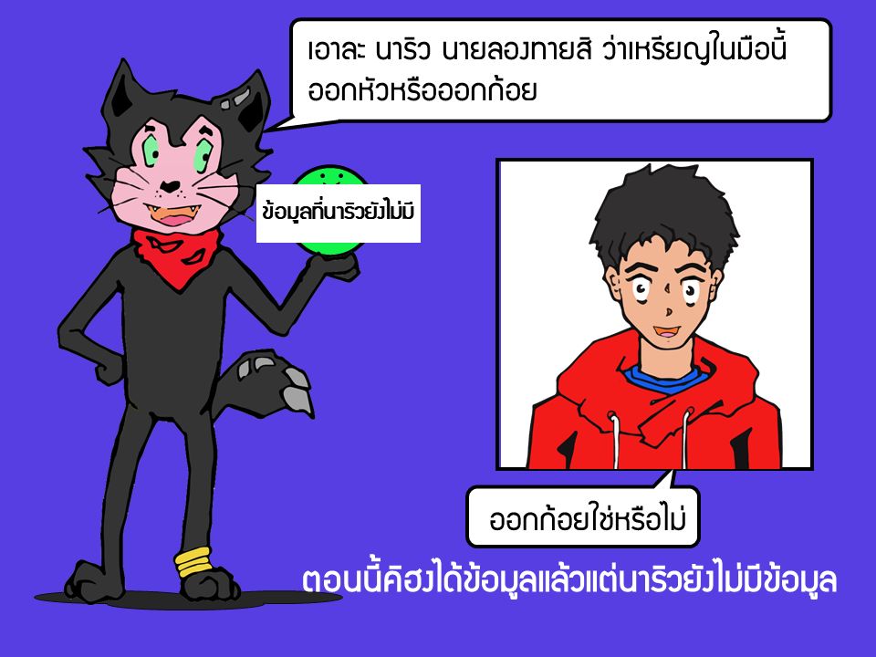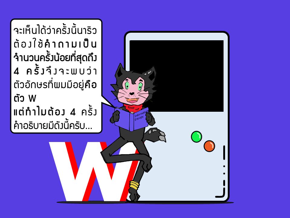 สำหรับตอนนี้เราจะมาดูกันว่าเราจะลดความไม่รู้ลงด้วย "อินฟอร์เมชั่นเอนโทรปี" ผ่านตัวอย่างเกมส์ทายผลลัพธ์นี้ได้อย่างไร