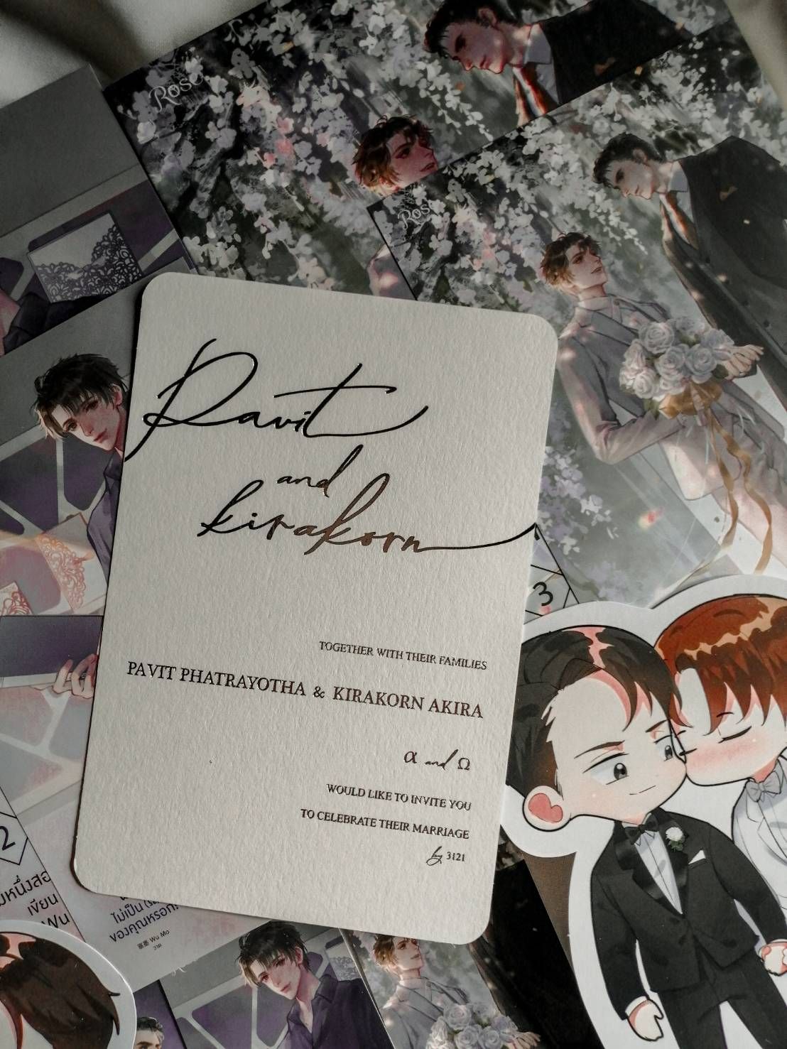 ป.ล. ขอหวีดปกอีกรอบ ปกสวยมาก สวยแบบสวยจึ้ง โดยเฉพาะเล่มสาม แวบแรกนึกว่านิยายแปลจีน แต่ที่ชอบมากๆ ก็คือการ์ดแต่งงานนี่แหละ ชอบไอเดียจัง นี่ถ้าสำนักพิมพ์ลงทุนใช้เป็นกระดาษหอมน่าจะฟินกว่านี้นะ 555