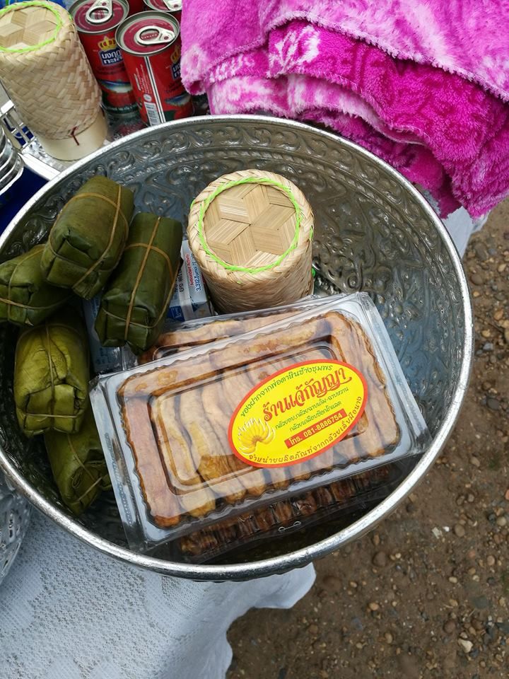 แล้วกุก็ทำเรื่องน่ารักจ้า ไปร้านแม่ไอ้ฉ่ำ ๕๕๕๕ ไปเอาของตักบาตร แม่ก็จัดให้ เอากล้วย จะได้ผ่านทุกอย่างไปกล้วยๆ หมูยอ เยินยอ นมจะได้สุขภาพ ความเหนียว ได้มั่นคง จัดมาค่ะแม่ ก็พอดี พระวัดป่าท่านมา ก็เลยตักบาตรแล้ว กรวดน้ำ คนชอบถาม เราตักบาตรให้คนเป็นได้ด้วยเหรอ ไม่รู้หรอก แต่ นึกถึงไง อยากให้สบายใจ มีความสุข เราทำบุญแล้วนึกถึงเรื่องดีๆกัน ไม่ได้นึกถึงเรื่องร้ายๆกัน จะทำตอนเป็นหรือตอนตาย ก็ไม่น่าจะมีปัญหามั้ง