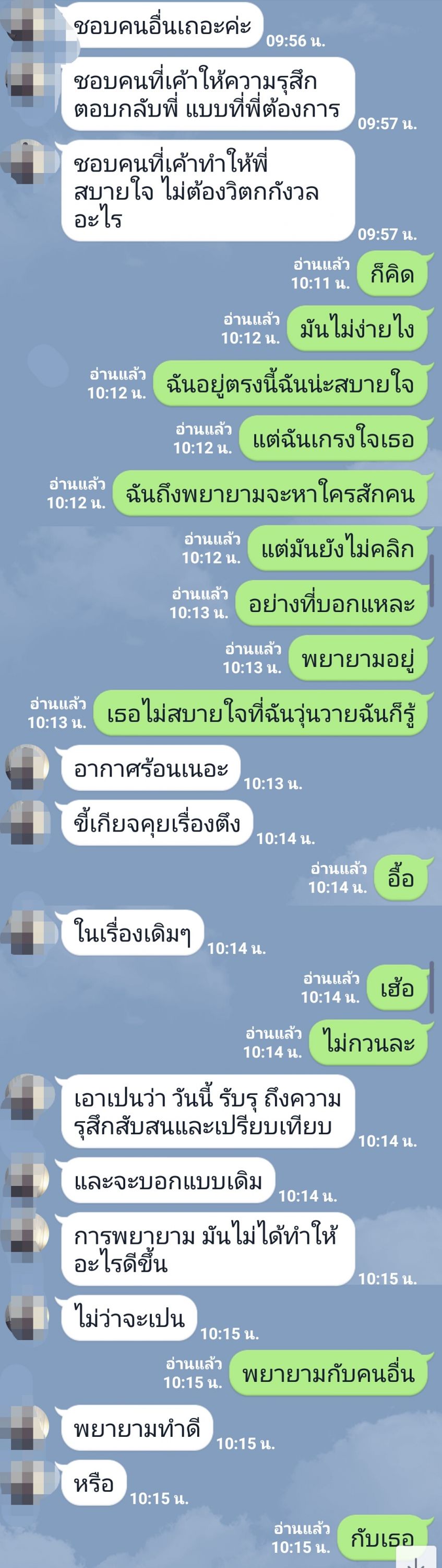 คุยกันทางไลน์ไม่รู้เรื่องละ เลยโทรคุย นางพร้อมบอกว่า กุฮาจริงๆ คือ คนที่กุไม่อะไรด้วย เค้าอาสากุสารพัด กับนาง คำนึงก็ไม่ถาม เท่านั้นแหละ ไม่มีอะไร? ก็ต่อปากต่อคำกันจนต้องออกไปคุยกับนางที่บ้าน โดยมีคำขู่ว่า