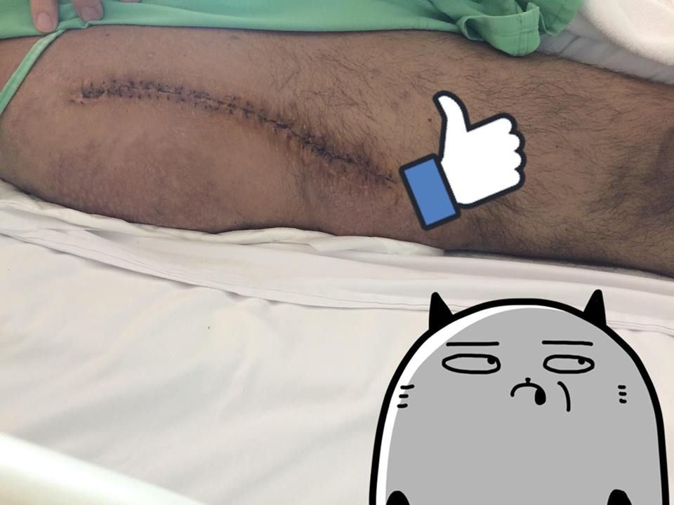 หมอบอกแผลสวยดีมาก ชิ้นเนื้อที่เอาไปย้อมสีก็ปกติดี ไม่มีมะเร็งไม่มีโรคนั้นโรคนี้ หมอบอกว่าขาด้านที่ผ่าอาจจะยาวขึ้นเกือบ 1 นิ้ว (เพราะมันใส่เหล็กเข้าไปเพิ่ม เหล็กรอบนี้จะยาวกว่าเดิม ก็ต้องเอารองเท้าไปเสริมส้นใหม่ให้มันเท่ากันอีก)