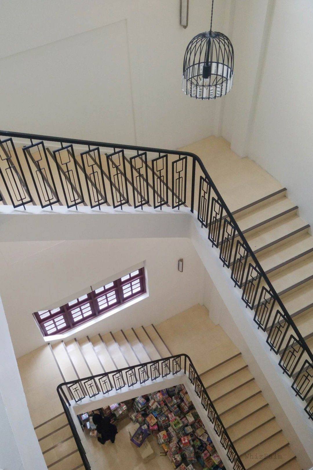 มุมนี้เป็นบันไดด้านหน้า ที่จะขึ้นลงได้แค่ชั้น 1, 2 และ 3 ค่ะ จะเห็นได้ว่ามีหนังสือมากมายรอทยอยขึ้นชั้น
