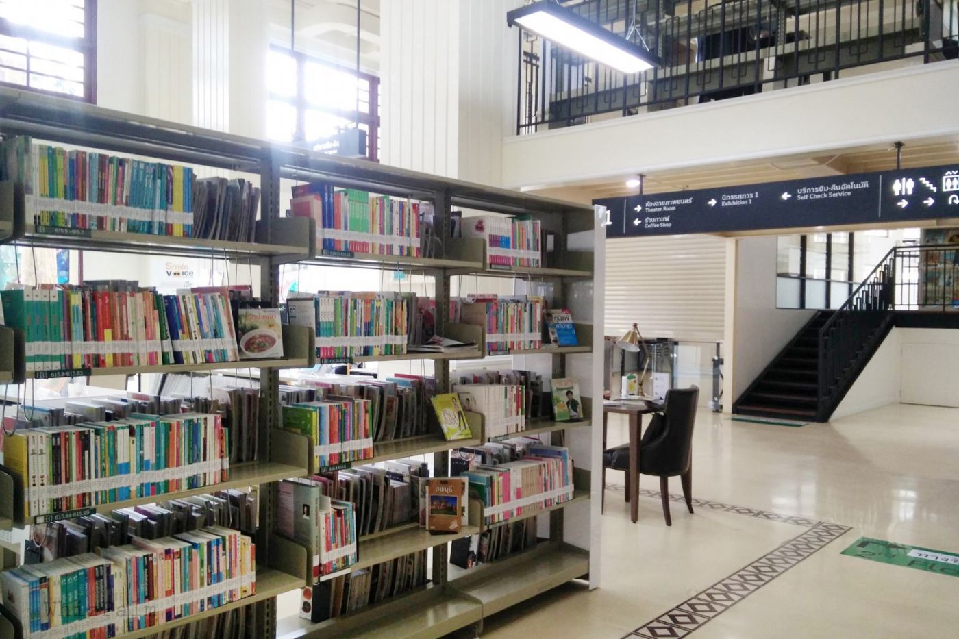 ด้านในมีล็อคเกอร์ให้ฝากของ มีบริการยืมหนังสือ รวมถึงบริการรหัส Wi-Fiด้วย (จำกัดการใช้งานต่อรหัส 2 หรือ 3 ชั่วโมง นี่ล่ะค่ะจำไม่ได้) สำหรับการยืมหนังสือ และบริการWi-Fi จำเป็นต้องสมัครสมาชิกก่อนนะคะ ค่าใช้จ่ายส่วนนี้ก็แค่ ปีละ 10 บาท เท่านั้นเอง สำหรับชาวไทย แต่หากไม่เป็นสมาชิกก็ใช้บริการได้ค่ะ เพียงแค่มีบัตรประชาชน (หรือพาสปอร์ต ในกรณีเป็นชาวต่างชาติ) แต่จะไม่ได้สิทธิยืม และสิทธิ์เข้าถึงWi-Fi เท่านั้นเอง