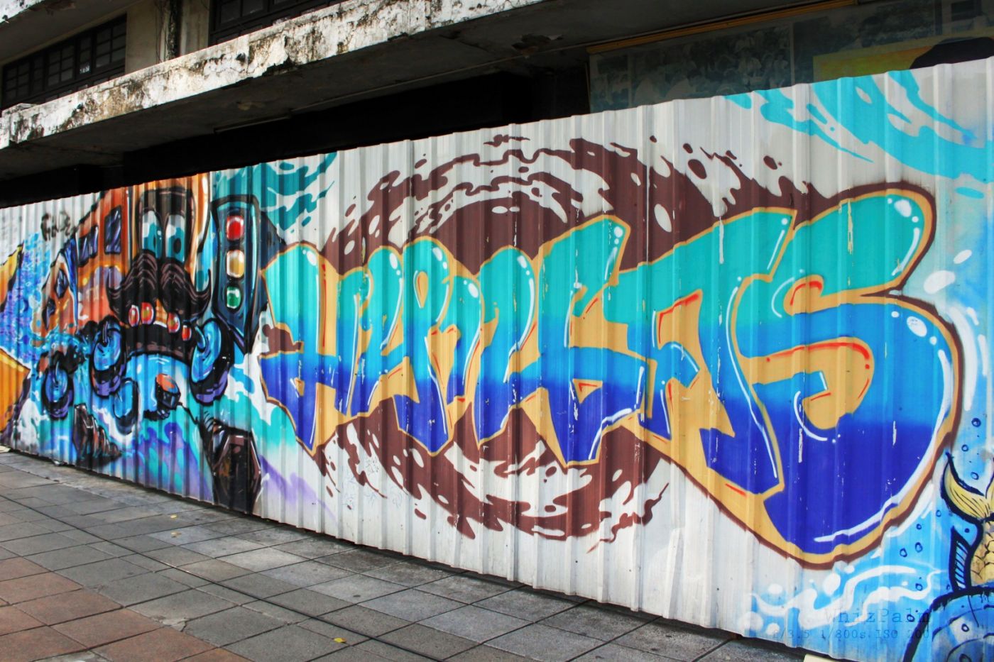 น่าเสียดายที่หลังจากเราถ่ายภาพกราฟฟิตี้บนสังกะสีชุดนี้แล้ว คล้อยหลังไปราวๆ 2-3 ชั่วโมง ขากลับก็พบว่าลายทั้งหมดนี่