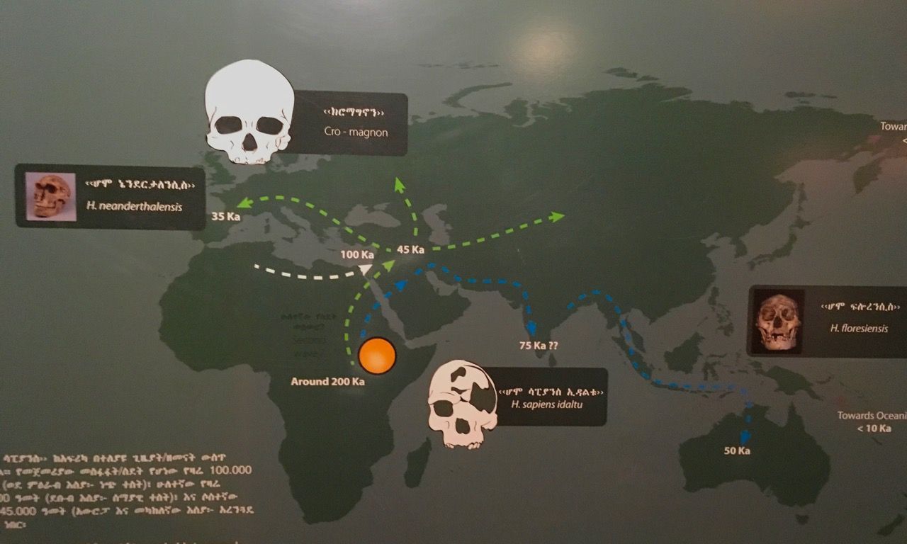 จึงมีทฤษฏีที่ว่า เขต Horn of Africa(บริเวณแหลมๆทางตะวันออกของแผนที่ทวีปแอฟริกาซึ่งรวมเอธิโอเปียด้วย) เป็นจุดต้นกำเนิดของเผ่าพันธุ์มนุษย์ มนุษย์คนแรกเกิดจากที่นั่น ก่อนจะค่อยๆกระจายไปทั้วทวีปแอฟริกา กระจายไปคาบสมุทธอาหรับ แตกสายกระจายไปทั่วโลก ซึ่งระหว่างทางก็ได้มีวิวัฒนาการเพิ่มๆขึ้นๆ มาเรื่อยๆ จนเป็นเรามาจนถึงทุกวันนี้