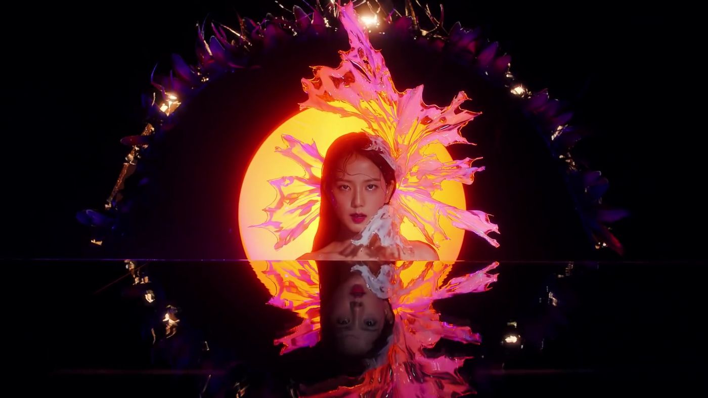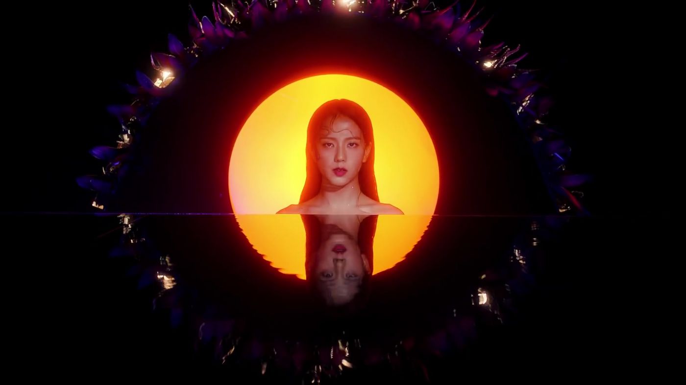 หากสังเกตดูภาพสะท้อนในน้ำ จะเห็นว่ากรอบด้านบนเมื่อเชื่อมกับเงาสะท้อน ภาพกลายเป็นเหมือนดวงตาขนาดใหญ่ที่กำลังจับจ้องมาที่พี่จีซูของเราอยู่ นอกจากจะหมายถึงการถูกจับจ้อง ยังสามารถตีความไปได้ว่ากำลังถูกจำกัดด้วยกรอบอะไรบางอย่างได้อีกด้วย เพราะแสงสว่างด้านหลังไม่สามารถจะขยายวงกว้างออกไปให้พ้นจากกรอบที่จำกัดอยู่ได้