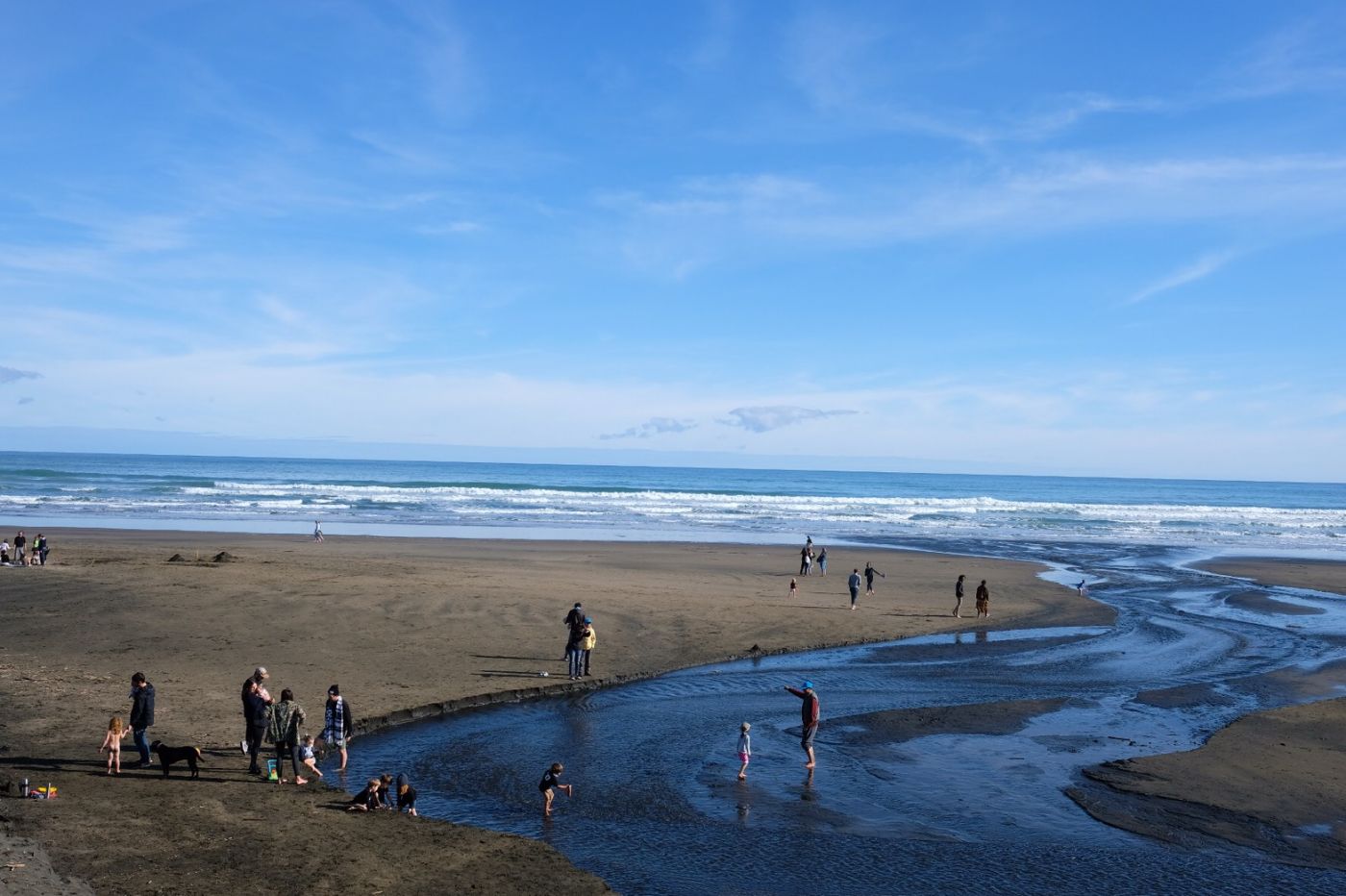 จากนั้นก็ได้ลงมาที่หาดสักที หาดสวยมากเลยนะ เห็นในรูปเหมือนร้อน แต่ความจริงคือหนาววว เราพกรองเท้าแตะไปด้วย ดีใจได้สัมผัสทะเลที่นี่ละ น้ำเย็นมากกก แบบเท้าชา คลื่นก็สูงแรงมาก คนมาเล่นเซิร์ฟกันพอสมควรเลย ส่วนเด็กๆที่นี่ก็เล่นน้ำ บางคนก็แก้ผ้าเล่นเลยนะ ตัวนิดเดียวเอง ไม่หนาวเหรอไงเนี่ย เราสงสัยมาก !