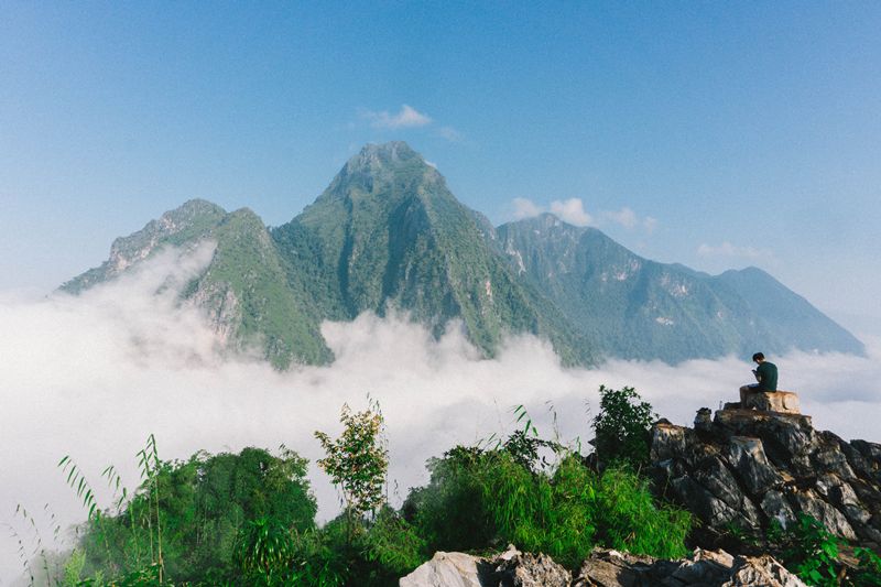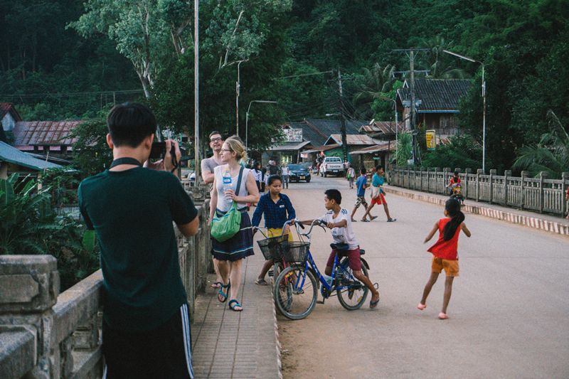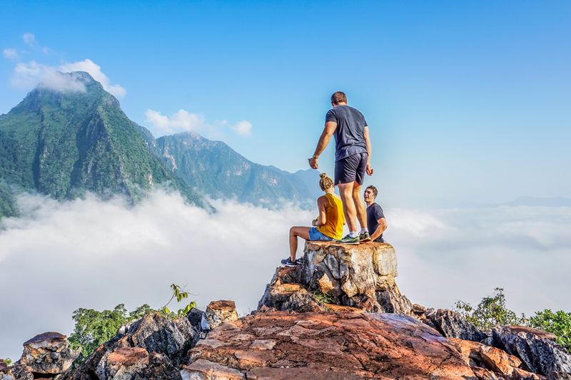 จนกระทั่งมีชาวต่างชาติขึ้นมาจังหวะที่เขาไปนั่งตรงแท่นหินชมวิวกับผู้ชายคนนึงเราเก็บภาพมาได้หลายรูป แล้วไปบอกเพื่อนว่า 'รูปนี้สวยชอบมาก' เพื่อนบอกกับเราว่า 'ทำไมถ่ายเพื่อนไม่ได้แบบนี้บ้าง' โอเค! เรายอมถ่ายรูปให้เพื่อนใหม่แต่ก็พบว่า รูปไม่ได้สวยเหมือนรูปนั้นที่เรามองว่ามันสวยทุกอย่างมันดูลงตัว ซึ่งเราก็ไม่ได้รูปแบบนั้นเหมือนกัน หลังจากที่เสพความฟินหนำใจแล้วเราเดินลงเขาเพื่อหาอะไรกินกันตอนเช้าและรีบอาบน้ำเพื่อไปให้ทันรถตู้ไปยังหลวงพระบาง