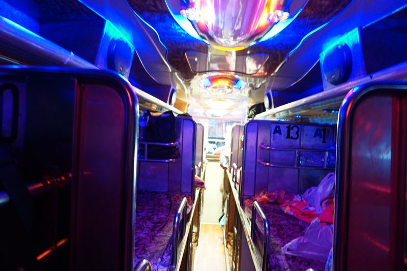 สภาพรถนอนเป็นรถแคบๆที่ทางเดินเป็นระบบแบบ one-way street อะไรเทือกนั้น เราได้นอนเตียงด้านบนซึ่งต้องปีนขึ้นไปนอน แน่นอนว่าไม่ใช่ปัญหา แต่ปัญหามันอยู่ที่เตียงหนึ่งนอนสองคนแล้วก็แคบฉิบหายเลยโว้ย! ถ้าใครเคยนอนโฮสเทลสภาพมันก็คล้ายโฮสเทลเคลื่อนที่ดีๆนี่เอง เพียงแค่โฮสเทลมันไม่ต้องแบ่งเตียงกับใครนอนไง...