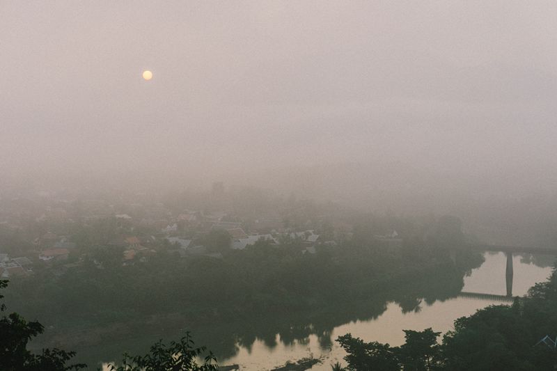 ขณะที่เรายืนอยู่จุดชมวิวที่พระธาตุพูสีมองเห็นหลวงพระบางถูกปกคลุมไปด้วยหมอกบางๆที่พอมองเห็นวิวบ้าง และไม่นานพระอาทิตย์ก็โผล่พ้นเหนือเมฆหมอกให้เราได้เห็น เราชอบการนั่งเงียบๆท่ามกลางอากาศเย็นมากๆ ถ้ามีเพลงให้ฟังด้วยก็จะยิ่งดี แต่ความสุขเราไม่ได้ดำเนินไปได้ด้วยดี เราได้ยินเสียงมนุษย์ถามเราว่า 'เธอไม่คิดจะไปมองมุมอื่นบ้างหรือ'