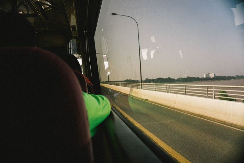 เราต้องขึ้นรถบัสคันนี้โดยตอนแรกไปแจ้งกับเจ้าหน้าที่ขนส่งแล้วแต่เขาบอกว่ารถ VIP จะยกเลิก/ไม่มีแล้ว เราเลยต้องจำใจนั่งรถคันนี้กลับ ยอมรับว่าตอนนั้นเหนื่อยมาก อยากนอนพักแบบสบายๆ รถเป็นแบบ open air เช่นเคย เราได้เบาะที่นั่งเสริมเป็นเก้าอี้พับ นั่งแล้วไม่มีที่พิงคอปวดคอมาก อีกทั้งนั่งตรงกลางทางเดินเราต้องคอยลุกให้คนด้านหลัง เวลาดึกๆเราหงุดหงิดมากเหนื่อย อยากนอน ปวดคอ คนข้างๆก็เหมือนจะเมาแต่ดีที่นั่งกับเมีย เราก็โอเคหน่อย ระหว่างทางตอนดึกอากาศเริ่มเย็นช่วงนั้นหนาวมากลมตีหน้า เสื้อกันหนาวก็ไม่เอาไปตอนแรกไม่คิดว่าจะหนาวขนาดนี้ ไม่รู้ว่ากี่ครั้งที่เราหยิบหูฟังขึ้นมาฟังเพลงดับความหงุดหงิดในใจเราจนหลับไป แต่หัวก็โยกเยกไปมาเป็นจังหวะร็อคเหมือนจะหลุดจนมาถึงเวียงจันทน์ ตอนนั้นอยากนั่งเงียบๆบนรถเมล์ที่พาเข้าไปตลาดเช้ามากหมดอารมณ์จะถ่ายรูป