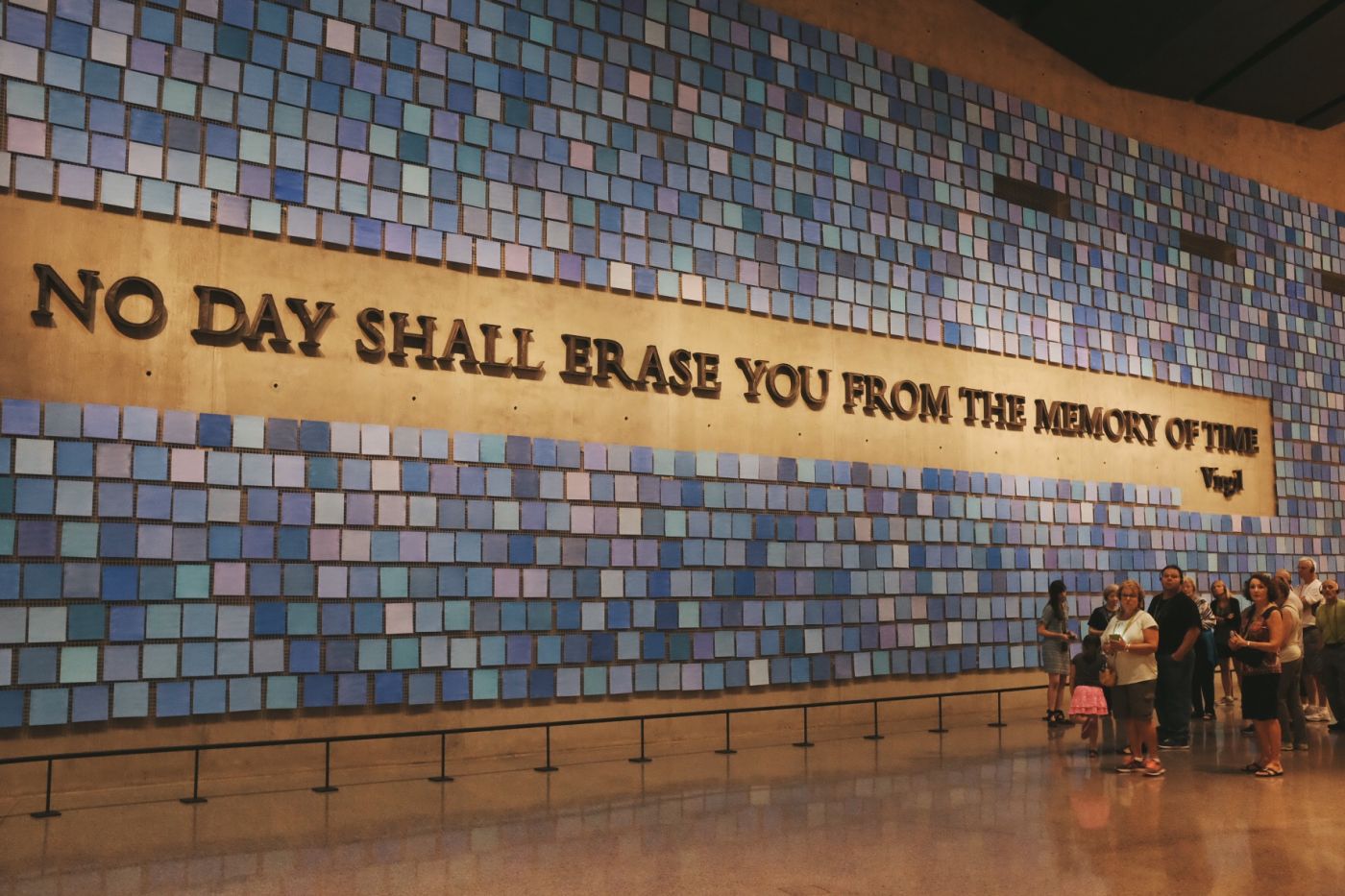 7. งานศิลป์ในภาพต่อมานี่คอนเซปท์ดีมาก คือตรงกลางเป็นเหล็กหล่อคำว่า No Day Shall Erase You From The Memory Of Time ซึ่งไม่ใช่เหล็กหล่อธรรมดาๆ เพราะว่าเป็นเหล็กที่มาจากโครงสร้างของตึกเวิลด์เทรดจริงๆ