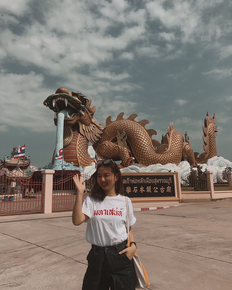 เรื่องมีอยู่ว่าเมื่อหลายเดือนก่อนนู้นนนนน ฉันกับเพื่อน ๆ ไปเดินเที่ยวเล่นตลาดสามชุกที่สุพรรณบุรี (ถึงแม้ในรูปถ่ายจะไปโผล่อีกที่ก็เถอะ แต่ก็ยังถือว่าอยู่แถวนั้นในวันเดียวกันแหละนะ ._.) ในตอนนั้นฉันจำได้ดีว่าเราทุกคนล้วนพุ่งความสนใจไปที่ของกินเรียงยาวสองข้างทาง จนตัวฉันเองก็ไม่ทันได้นึกว่าวันนี้ใส่เสื้อตัวไหนมา แต่แล้วค่าเสื้อ100กว่าก็คุ้มค่า ? เมื่อกำลังจะเดินออกจากตลาดไปขึ้นรถ ก็มีพี่คนนึงตะโกนเรียกเสียงดังฟังชัดที่ทุกสายตาแถวนั้นต้องหันไปด้วยความสงสัยว่าอิหยังว่ะในใจ พร้อมกับเห็นใบหน้าพี่เขาจริงจังปานกลางแล้วพูดต่อว่า
