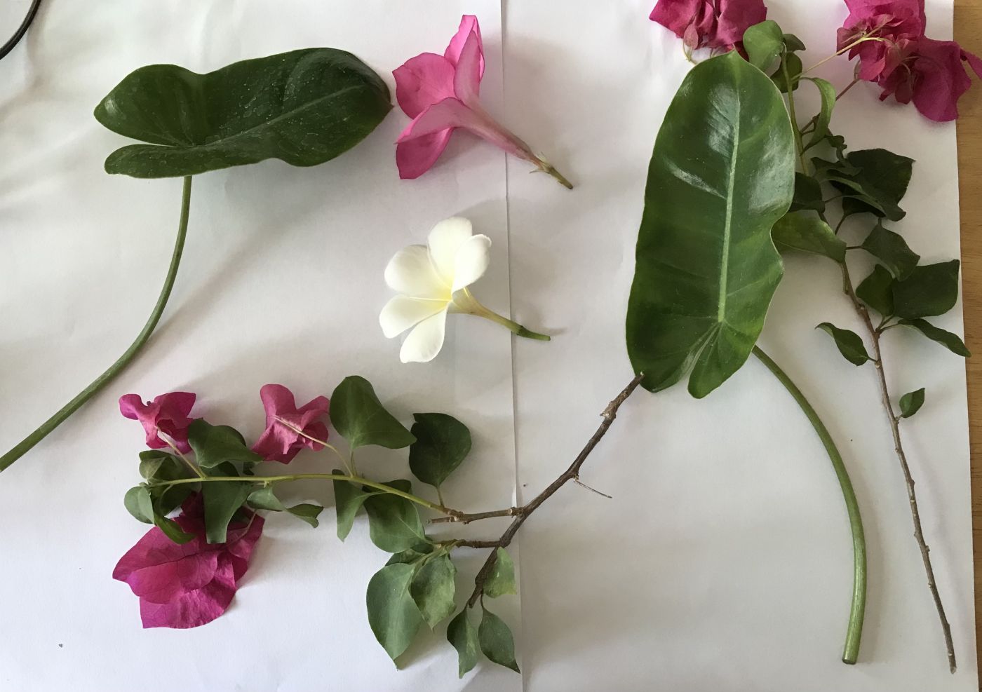 “ในนามของดอกไม้"* ชื่อกิจกรรมแสนละมุนละไมดึงดูดให้ฉันสนใจตั้งแต่แรกเห็น แน่นอนว่ามันต้องเกี่ยวกับดอกไม้ และเป็นการจัดดอกไม้เพราะดูจากรายการอุปกรณ์ที่ผู้เข้าร่วมต้องเตรียม มีทั้งดอกไม้ แจกัน น้ำเปล่า อุปกรณ์ตัดกิ่งก้าน และน้ำดื่ม??? (มีความสงสัยเกิดขึ้นมานิดนึงว่าเอาไว้ทำอะไร) ... ทางผู้จัดแจ้งให้หาใบไม้ ดอกไม้ที่มีในบ้าน ไม่ต้องซื้อหา แต่ดอกไม้ที่บ้านฉันมีน้อยมาก ส่วนมากเป็นไม้ใบ ไม้มงคลที่ได้รับมา ทำให้สองจิตสองใจว่าจะไปซื้อดอกไม้เพิ่มดีไหม คิดในใจว่าจัดแจกันดอกไม้ทั้งที ก็อยากจัดให้มันสวยนะ แต่สุดท้ายตัดสินใจใช้เท่าที่หาได้ โดยไม่ต้องซื้อดีกว่า ไม่เป็นภาระดี และตรงโจทย์ที่เขาแจ้งมาด้วย