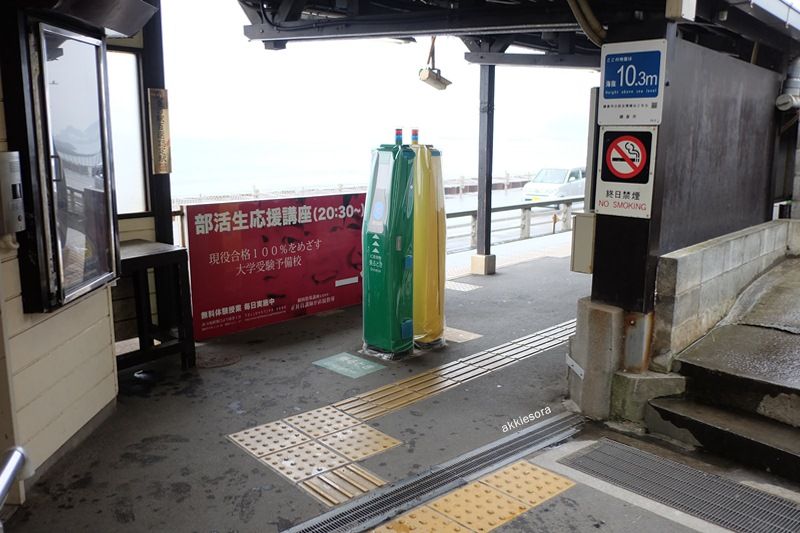 เดิมทีตั้งใจว่าจะลงไปเดินเลียบชายทะเล และถ้าออกนอกสถานีเดินไปตามถนนฝั่งตรงข้ามทะเลจะเจอโรงเรียนม.ปลาย เสียดายเหมือนกันที่ไม่ได้ลงไปเดิน เพราะฝนตกพรำ ๆ ตลอด ลมก็พัดมาเรื่อย ๆ หนาวเหลือเกิน ไคโระ 4 ซองนั้นไม่ได้ช่วยอะไรเลย...