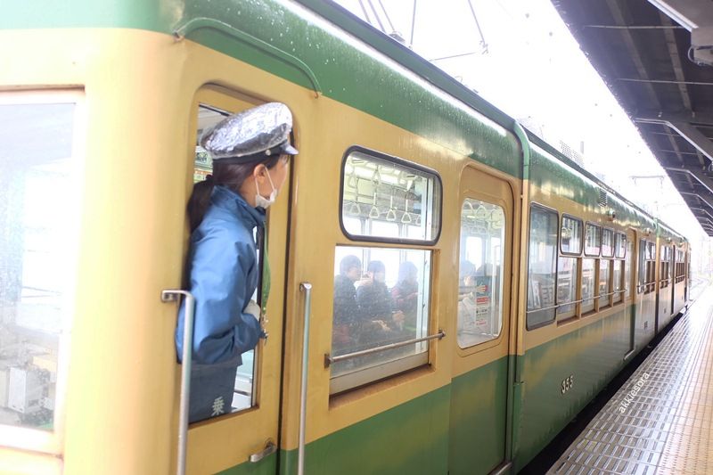 รอสักพักรถไฟก็มา ตื่นเต้นมากที่ได้เห็นขบวนแรกเป็นสีเขียวเหลืองเหมือนในภาพ เพราะบางขบวนจะเพนท์ลายการ์ตูนซึ่งเราไม่ต้องการ… 555555 เรากับพี่เลยเลือกนั่งหัวขบวนเพื่อจะได้มองวิวเดียวกับคนขับ ให้ความรู้สึกเหมือนเล่นเกมฮิวโก้