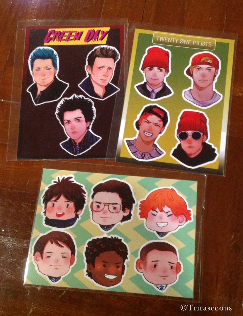 - (บนสุด) สติ๊กเกอร์ที่สต๊าฟ Coloremarmalade เอามาแจกในงานค่ะ เป็นสติ๊กเกอร์ทำมือสี่สมาชิกวงในยุคThree Cheers แต่เรายังไม่ได้แกะ (ชอบแพคเกจเลยไม่อยากแกะ55) เลยมีพี่จีให้เห็นแค่คนเดียว)