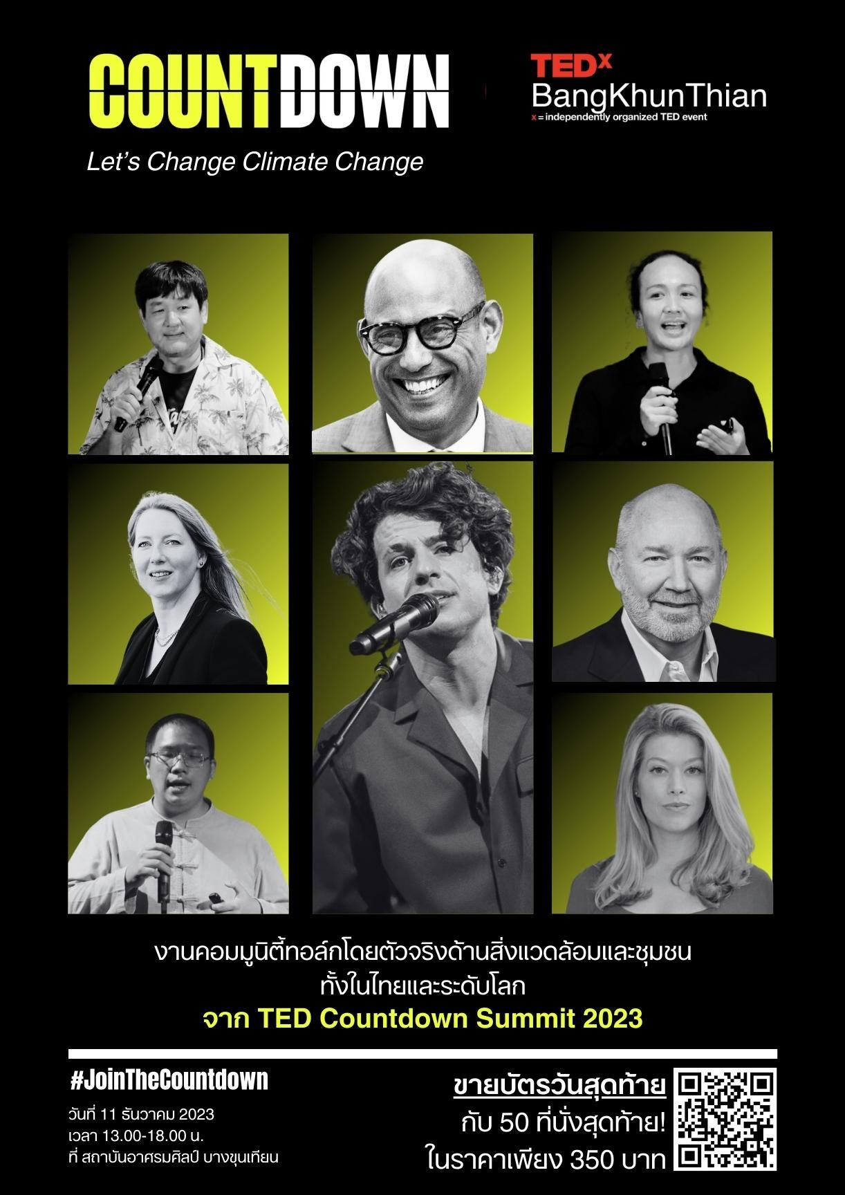 อีเว้นปลายปี กิจกรรมนี้นำเสนอสุด ๆ เพราะ เสน่ห์ของ TEDxBangKhunThian คือความเป็นกันเองและเข้าถึงธรรมชาติในเมืองได้ดีที่สุด เพราะสถานที่จัดที่ สถาบันอาศรมศิลป์ คือสถาปนิกชุมชนที่ออกแบบ สวนป่าเบญจกิติ และรัฐสภาประเทศไทย
