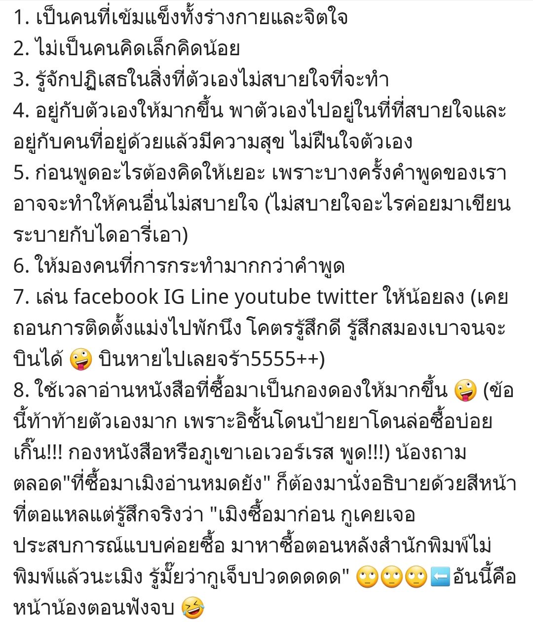 ข้อ7ลดการเล่นโซเชียลช่วงต้นปีแรกนี่ถือว่าทำได้ดีโดยเฉพาะfacebookน้อยมากที่จะเข้าเว้นแต่ไปรีวิวซีรีส์หนังสือลงเพจ แต่พอช่วงปีหลังเข้าวงการติ่งไอดอลกับการเมืองร้อนแรงเท่านั้นแระจร้า หนักหน่วง5555++เข้าไปดูความสดใสของไอต้าวและอิหยังว่ะขิงข่าเปิดตาการเมืองไทย ข้อนี้ถือว่าไม่ผ่านจะพยายามจำกัดเวลา⏰❌❌