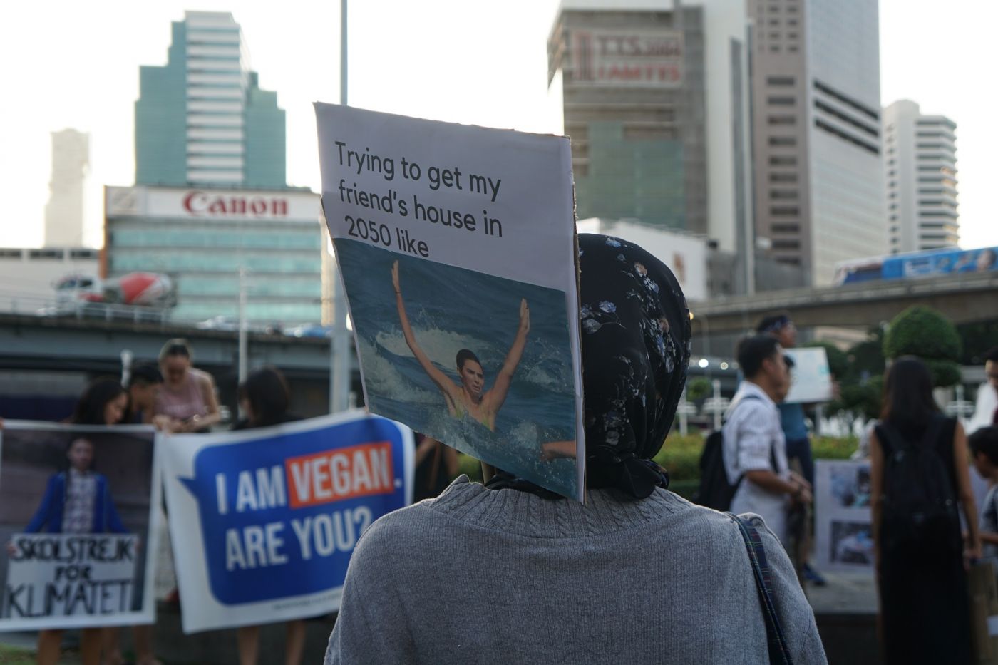 ป้ายทำมือ ที่เยาวชนและผู้ใหญ่ใช้ถือออกมาประท้วงวิกฤตการณ์ภาวะโลกร้อนเมื่อวันที่ 1 ธันวาคม พ.ศ. 2562 เรียกความสนใจฉันได้เป็นอย่างดี การประท้วงครั้งนี้จัดขึ้นพร้อมกันทั่วโลกเป็นครั้งที่ 4 เพื่อเรียกร้องให้ผู้คนหันมาสนใจในประเด็นเรื่องภูมิอากาศของโลกที่เราอาศัยอยู่ Climate Strike เป็นการแสดงออกด้วยถ้อยคำ ตัวหนังสือ ภาพประกอบ และสัญลักษณ์ที่ผู้ออกมาชุมนุมใช้เพื่อแสดงให้เห็นถึงความร้ายแรงที่มาพร้อมกับภาวะโลกร้อน ผ่านการ ‘ล้มตาย’ หนึ่งในคนที่นอนลงที่พื้นบริเวณลานพระบรมรูปรัชกาลที่ 6 หน้าสวนลุมพินีนั้น คือ กุลธิดา เลาะวิถี หรือ จามี่