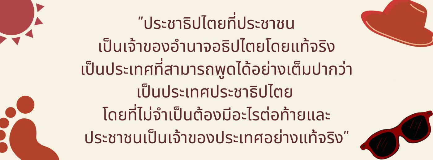 คุณป้าหมวกแดงกล่าวทิ้งท้ายกับเราถึง "ประชาธิปไตยในฝัน" ของคุณป้าไว้ว่า