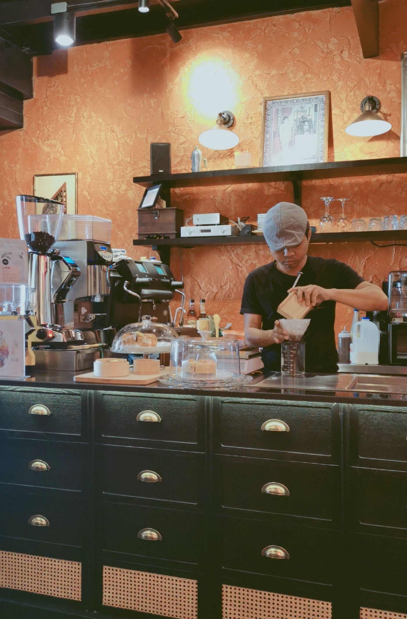 การตกแต่งเป็นบรรยากาศแบบจีนๆ เราชอบกระจกทรงกลมตรงประตูทางเข้าร้านมาก ต้องถ่ายรูปเลย ในร้านเล็กๆของตึกแถวไม่ได้รู้สึกอึดอัด โต๊ะไม่เยอะแต่จัดวางลงตัว แพลนกล้องไปรู้สึกสวยทุกมุม