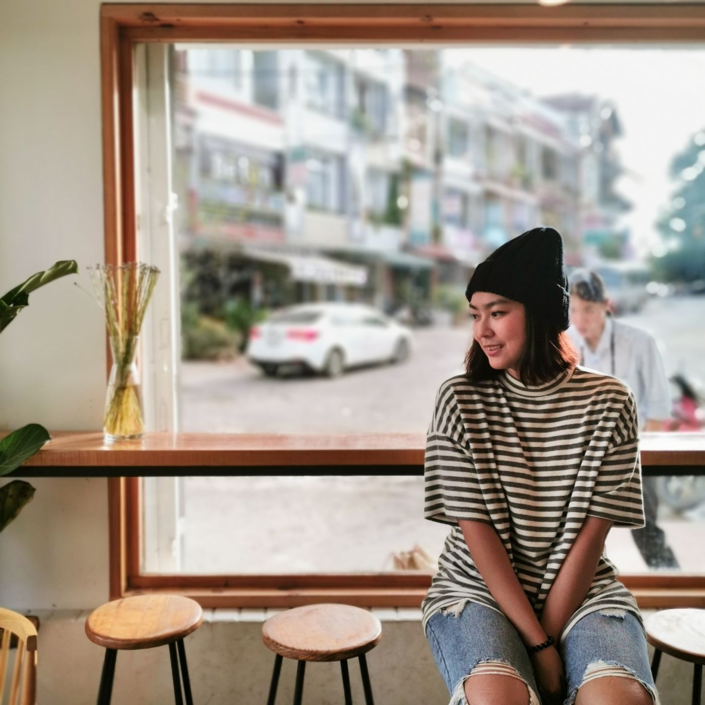 เราเจอร้านนี้ในไอจี ชอบการแต่งร้านด้วยกรอบสี่เหลี่ยมบานใหญ่ที่มองออกไปจะเห็นวิวเมืองกว้างๆ