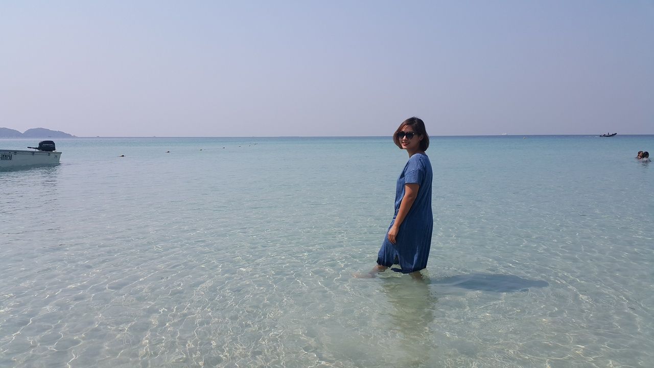 หาดที่นี่ไม่ใหญ่มาก โชคดีที่ไปถึงช่วงสายๆ คนยังไม่เยอะ รีบจับจองที่ร่มๆ กางเสื่อ วางสัมภาระ แล้วลงสำรวจทะเลกัน