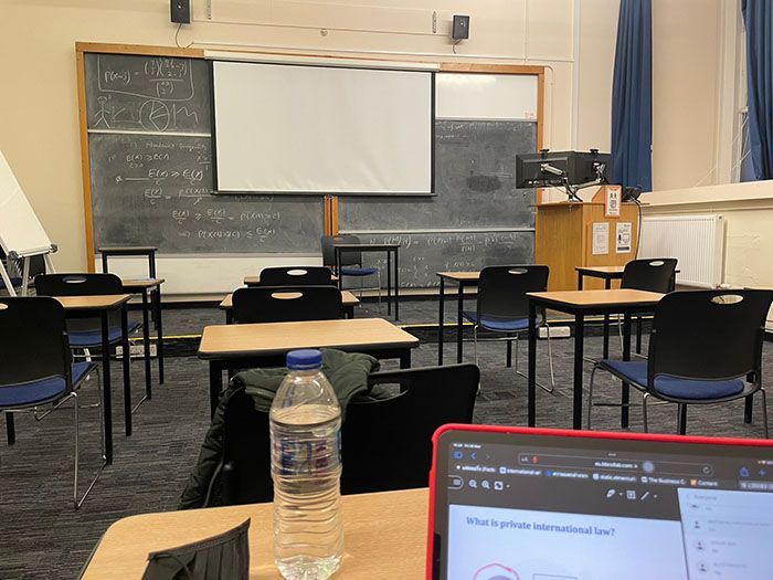 แต่เอาเป็นว่าแม้สถานการณ์จะเป็นแบบนี้ทางมหาลัยเค้าก็มีให้เรียน In Campus บ้าง ซึ่งก็แลกมาด้วยมาตรการที่เข้มงวดนิดหน่อย เช่นเว้นระยะห่างใส่หน้ากาก ล้างมือ อะไรก็ว่าไป ซึ่งผมก็ได้มีโอกาสเข้าไปเรียนในชั้นอยู่หนึ่งสองวิชา และบรรยากาศการเรียนปริญญาโทที่นี่นั้นทำให้เรารู้สึกเหมือนอยู่ในหนังซะงั้น ที่จะมีกระดานหน้าชั้นเรียนกับห้องที่ดูเก่าๆขลังๆ อารมณ์ อาจารย์กำลังคิดทฤษฎีบางอย่างแล้วก็ถามนักศึกษาว่าแบบนี้จะดีไหมแบบนี้จะเวิร์คไหมหรือแม้แต่นักศึกษาเองก็สามารถถามคำถามพิศดารต่างๆได้ตราบใดที่เกี่ยวกับวิชาที่สอน