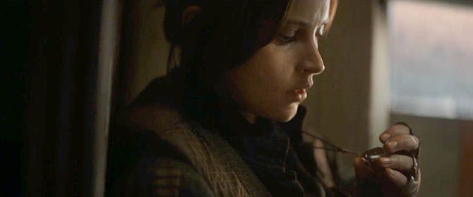 สร้อยคอไคเบอร์คริสตัลของจิน เออร์โซ เนื่องจากนางไม่มี Force sensitive คริสตัลจึงไม่มีรีแอคชั่นอะไรกับนาง