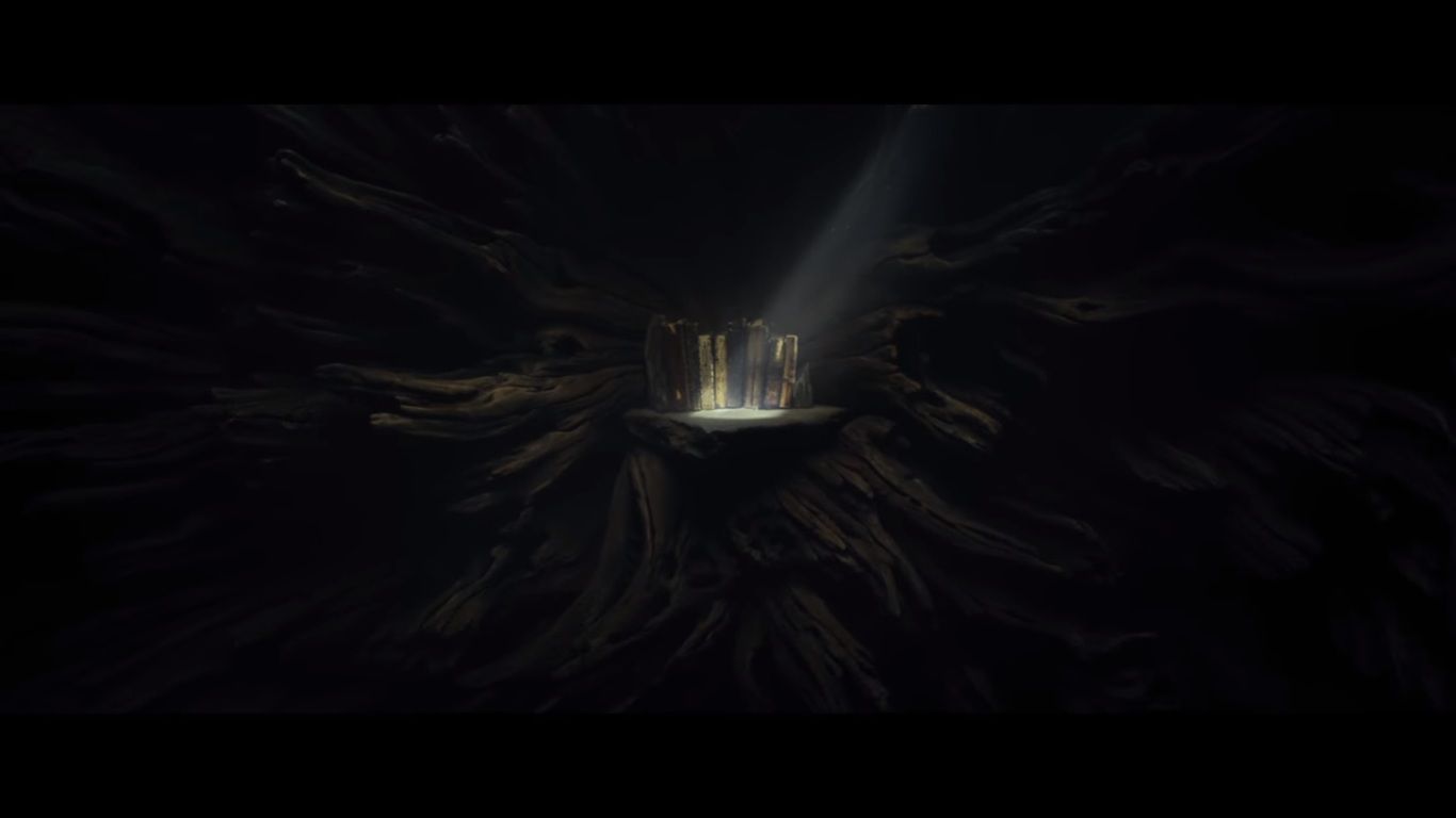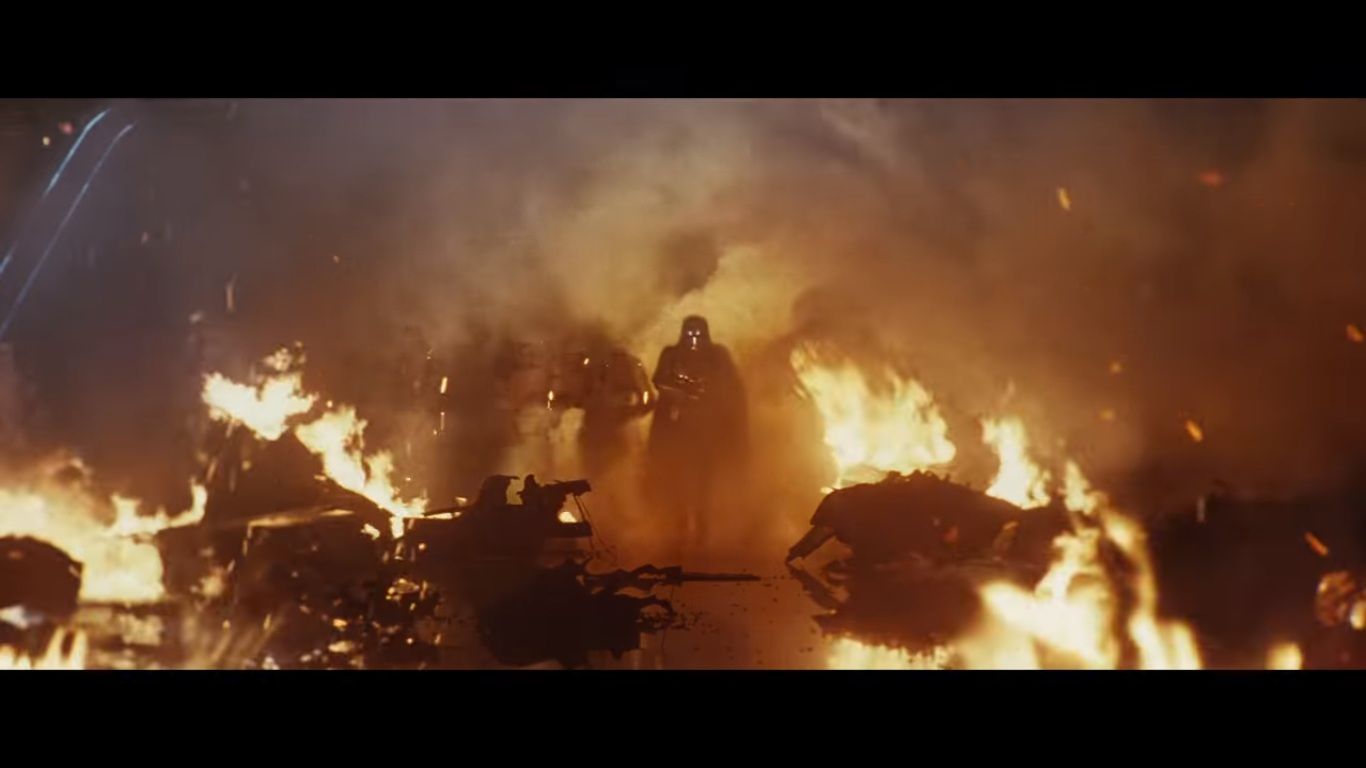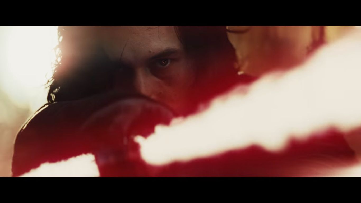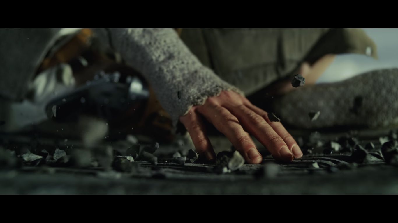 หน้ากากไคโลที่แตก มีเสียงลมหายใจดาร์ธ เวเดอร์และเสียงโอบิวันพูดว่า Seduced by the dark side (ถูกชักจูงโดยด้านมืด) ตามด้วยเสียงเรย์พูดว่า Darkness (ความมืด)