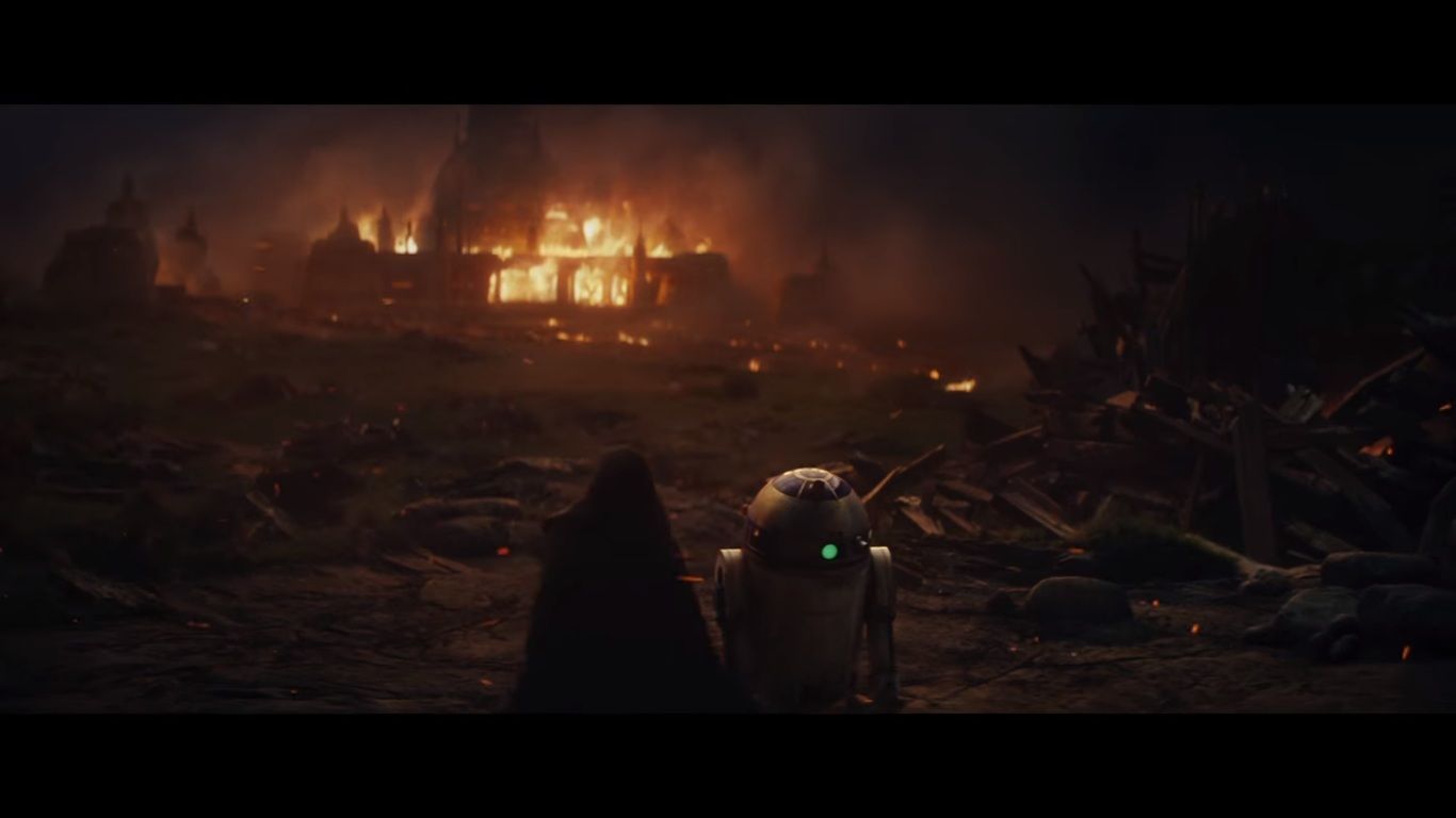 เป็นซีนก่อนที่ลุคเอื้อมมือจับ R2 ในฟอร์ซวิชั่นของเรย์ใน EP7 ไม่กี่วิแน่นอน น่าจะเป็นตอนที่วิหารเจไดของลุคที่เอาไว้สอนเจไดถูกทำลาย แล้วใครมันจะทำล่ะนอกจากไคโล (บางทีอาจจะ and friends)