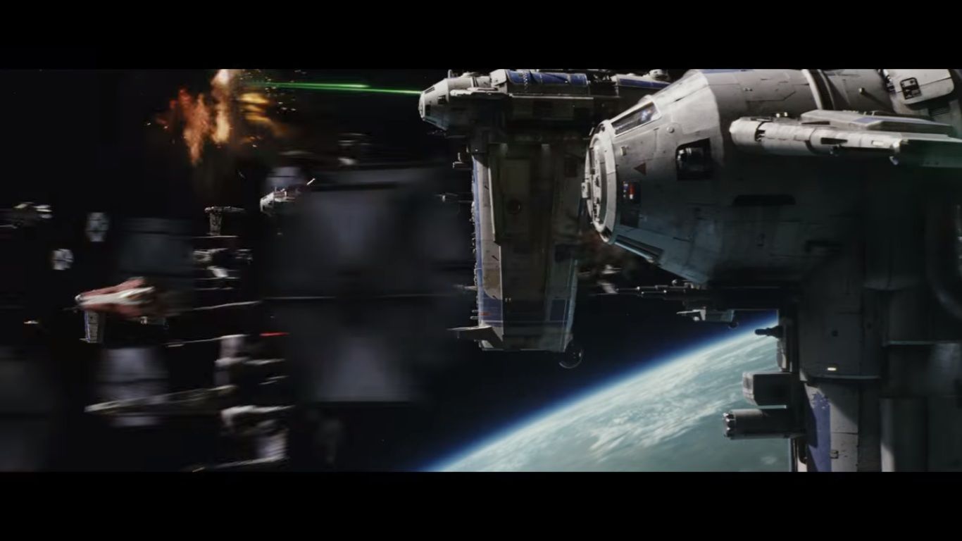Millennium Falcon กำลังหลบหนีการไล่ล่าของ TIE fighter เป็นไปได้ว่าพวก First Order รู้แล้วว่าเรย์หนีมาอยู่ดาวนี้ แถมยังมีลุคอีก เลยต้องทำการซิ่งออกจากดาวโดยด่วน