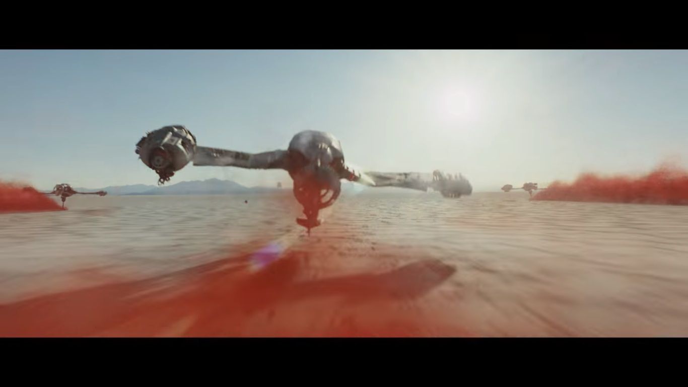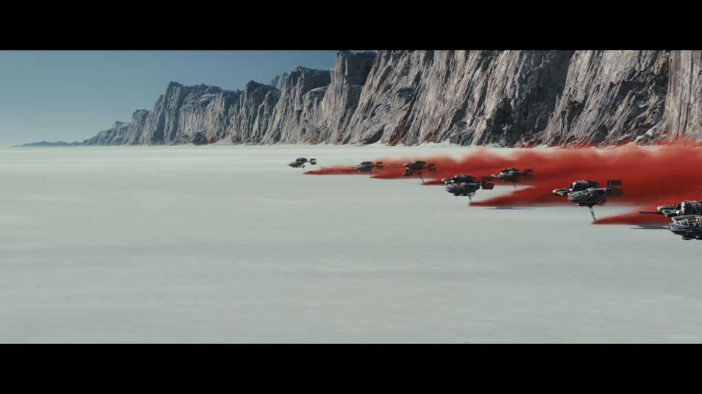 ดูเหมือนว่าฝั่ง First Order จะเจอฐานของพวก Resistance เข้าให้ เลยทำการบุกโดยขนเจ้าพวกวอล์คเกอร์ AKA เต่า มาด้วย ส่วนผงแดงจะมีประโยชน์อะไรก็เดาไม่ออก ยานที่ขับแบบรีบ ๆ ส่วนตัวเดาว่าอาจจะเป็นพี่โพ เพราะว่าวิ่งไปกับ BB-8 เหมือนจะเตรียมไปขับ X-wing แต่ยานดันโดนบึ้มซะก่อน เลยต้องมาขับยานอันนี้เลยดูรีบ ๆ เหมือนจะตามคนอื่นให้ทัน (มโนเป็นฉากเชียว)