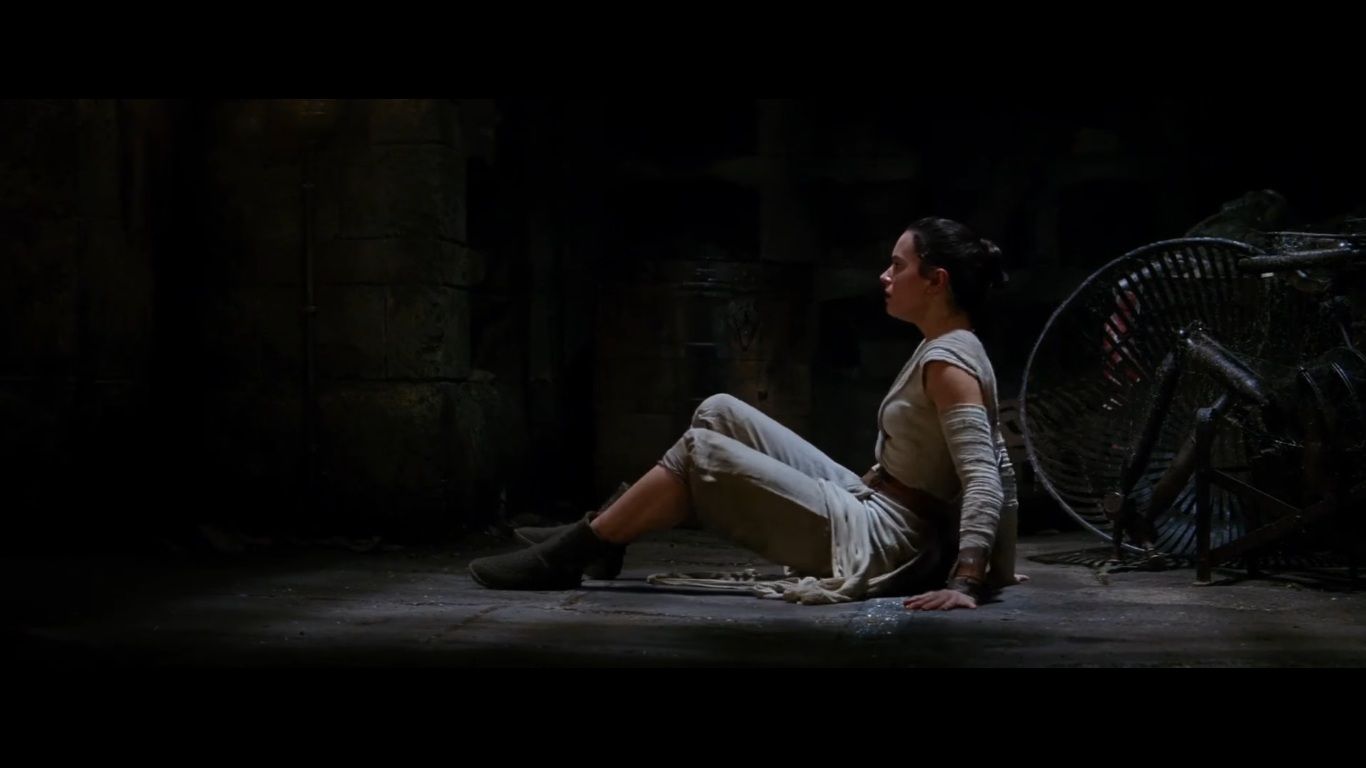 พอหายมืดก็จะเห็นเรย์เอามือแตะพื้นแล้วเศษหินลอยขึ้นมาสามรูปแรกไม่ได้บอกอะไรเรามาก ส่วนเสียงลุคก็เหมือนว่ากำลังสอนเรย์ให้เข้าถึงฟอร์ซอยู่ รูปสุดท้ายเหมือนว่าเรย์กำลังเริ่มใช้ฟอร์ซแบบเป็นงานเป็นการแล้ว อย่างการใช้ฟอร์ซแบบพื้นฐานสุด ๆ คือ เทเลคิเนซิส (เคลื่อนย้ายสิ่งของ)