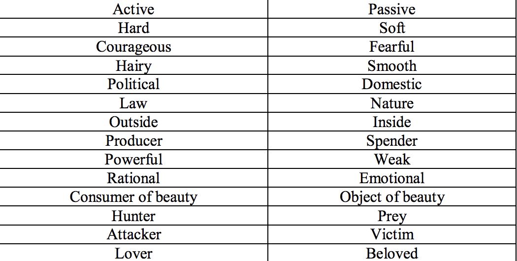 ความเป็นชาย (Masculinity, ซ้าย) vs. ความเป็นหญิง (Femininity, ขวา) ตามกรีกโบราณ