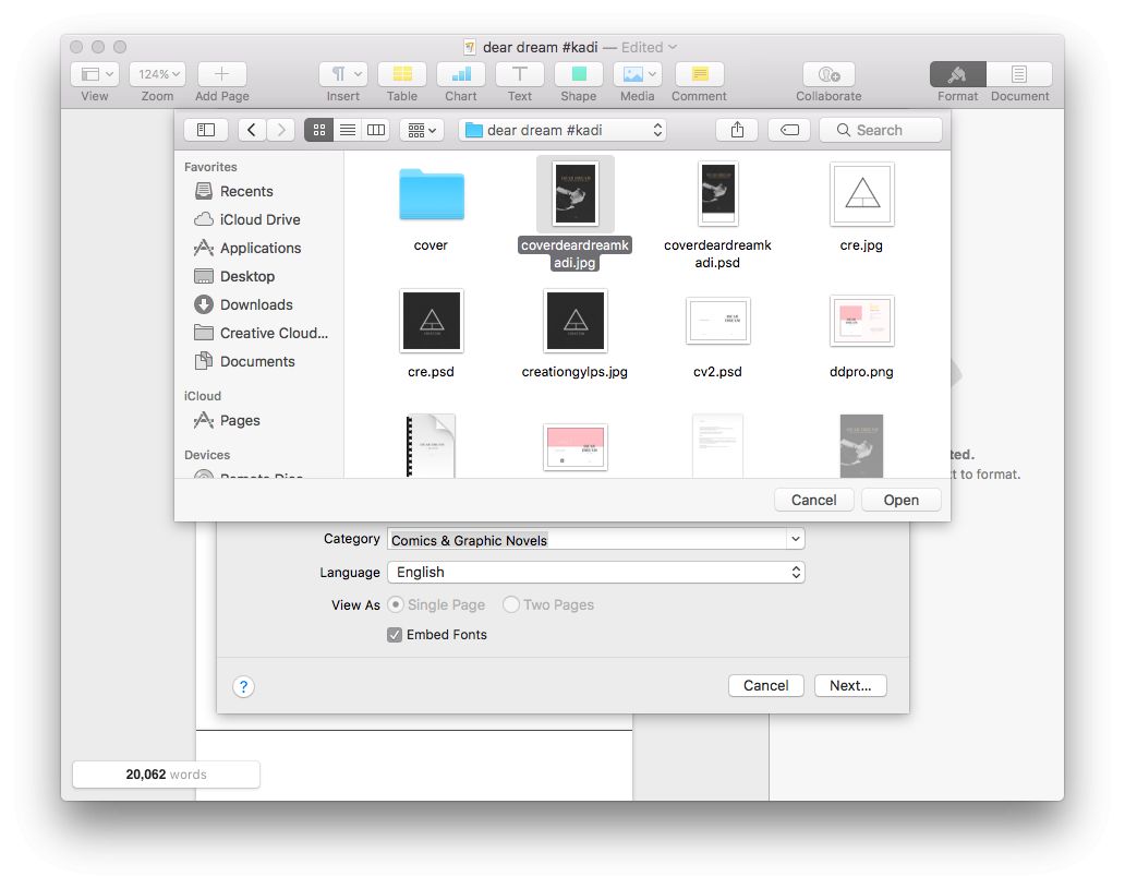 ตรงช่อง Cover จะเห็นว่าตอนนี้มันเลือกอยู่ที่ 'Use the first page as the book cover image' อัตโนมัติ