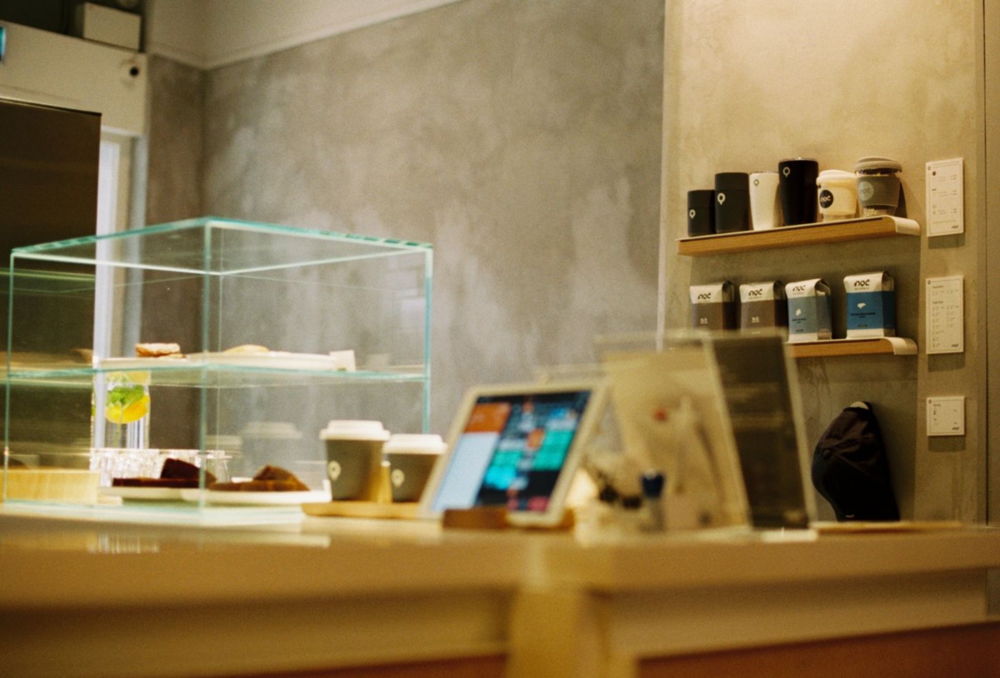 ตัวร้านเล็กกว่าที่คิด หน้าร้านมีคนนั่งจิบกาแฟร้อนคุยกันอยู่ ฉันกดชัตเตอร์ไปหนึ่งครั้งก่อนจะเดินเข้าไปด้านในและสั่งอะไรที่เพลย์เซฟอย่างFlat White แล้วหาที่นั่ง ในร้านไม่กว้างมากแต่ก็ไม่อึดอัดเท่าไหร่ มีปลั๊กไฟให้เสียบ คิดว่ามานั่งทำงานหรือนั่งเล่นก็คงได้ มีขายแก้วกาแฟ ขายเมล็ดกาแฟ แต่ ณขณะนั้นฉันไม่อยากจะเพิ่มน้ำหนักให้กระเป๋าเป้สักเท่าไหร่เลยไม่ได้ซื้ออะไรติดมือกลับมา
