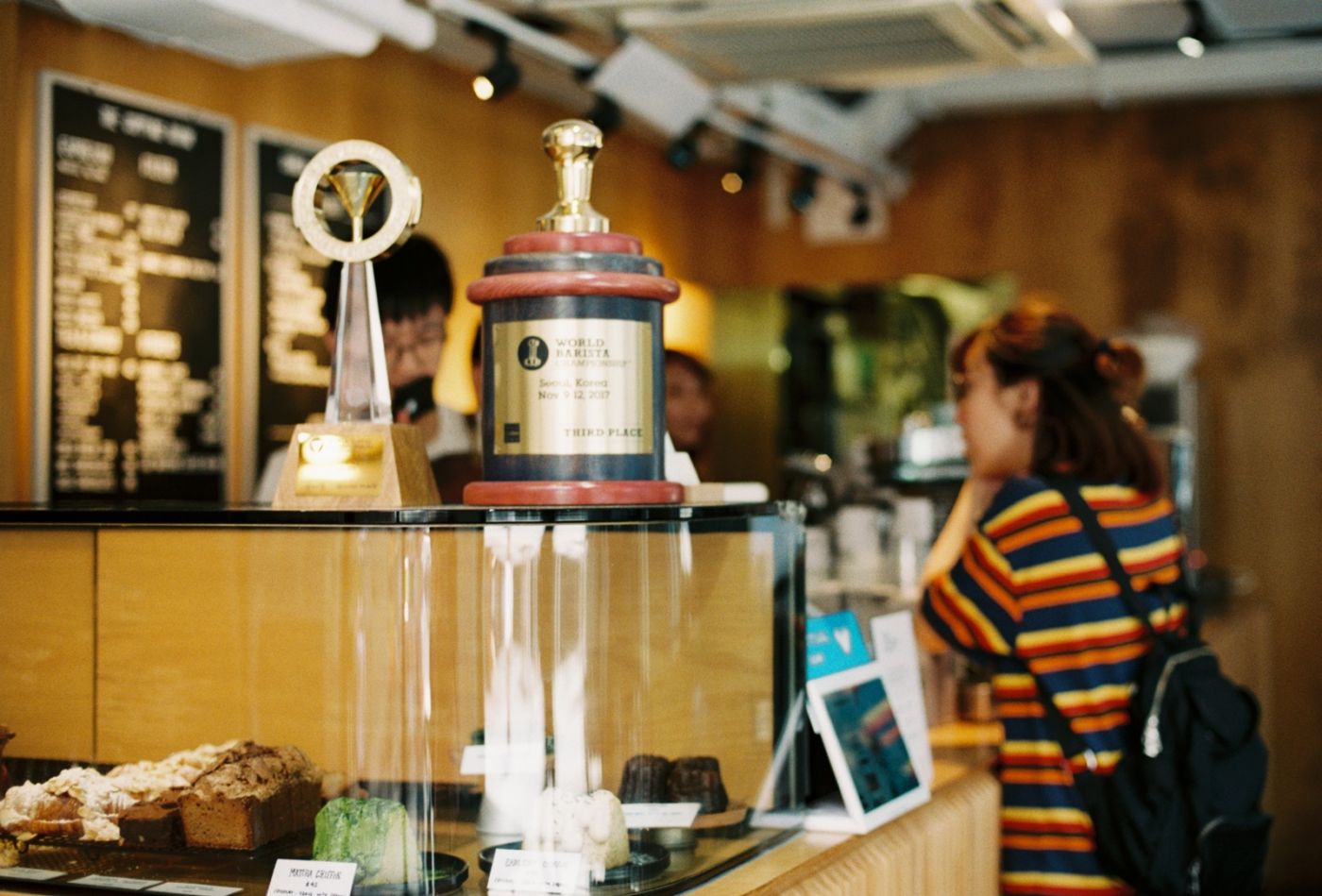 ความจริงในกระเพาะก็ไม่ค่อยจะมีพื้นที่ว่างสักเท่าไหร่ แต่ความอยากดันเอาชนะจนได้ ฉันเลยสั่งกาแฟฟิลเตอร์มาแก้วนึง และหันไปเห็นคานาเล่ในตู้เลยจัดมาสักชิ้นก่อนจะขึ้นไปหาที่นั่งชั้นสองซึ่งเหลือโต๊ะสุดท้ายพอดี ร้านนี้เคยได้แชมป์บาริสตาและได้รางวัลมาอีกหลายรายการ คนเลยเต็มร้านตลอดเวลา ทำให้นึกถึงร้านดังแถวพญาไทขึ้นมาชอบกล เสียงค่อนข้างดัง ซึ่งน่าจะเป็นปกติ