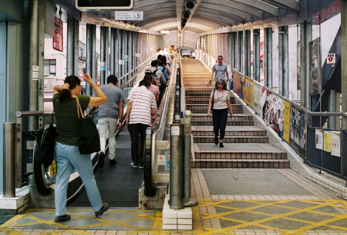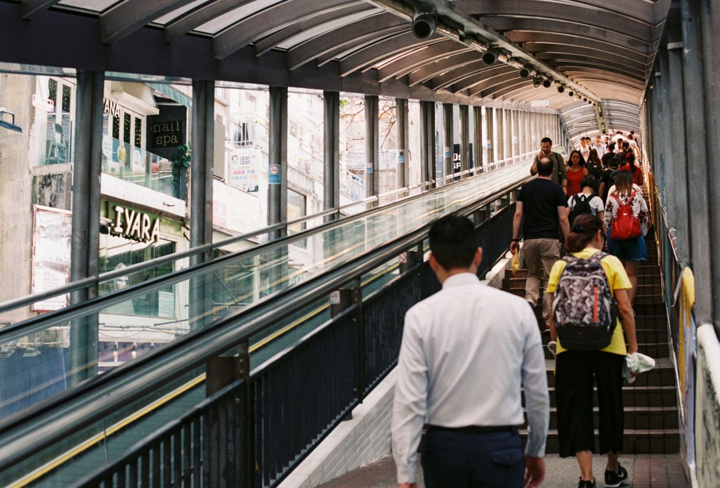 จากการค้นข้อมูลในกูเกิ้ลตามที่ผู้นำบางประเทศแนะนำจึงพบว่าชื่อเต็มของมันคือCentral Mid-Levels Escalator เป็นบันไดเลื่อนกลางแจ้งที่ยาวที่สุดในโลก ถูกสร้างขึ้นเพื่ออำนวยความสะดวกให้กับประชาชนที่อาศัยอยู่บนเขา มีเวลาทำการสำหรับขาขึ้นและขาลง แต่ตอนที่ฉันไปถึงบริเวณนั้นเป็นช่วงเวลาที่บันไดเลื่อนกำลังเปิดให้ขึ้นพอดี
