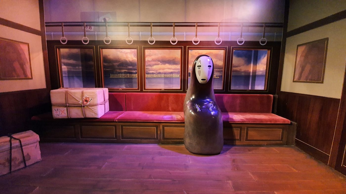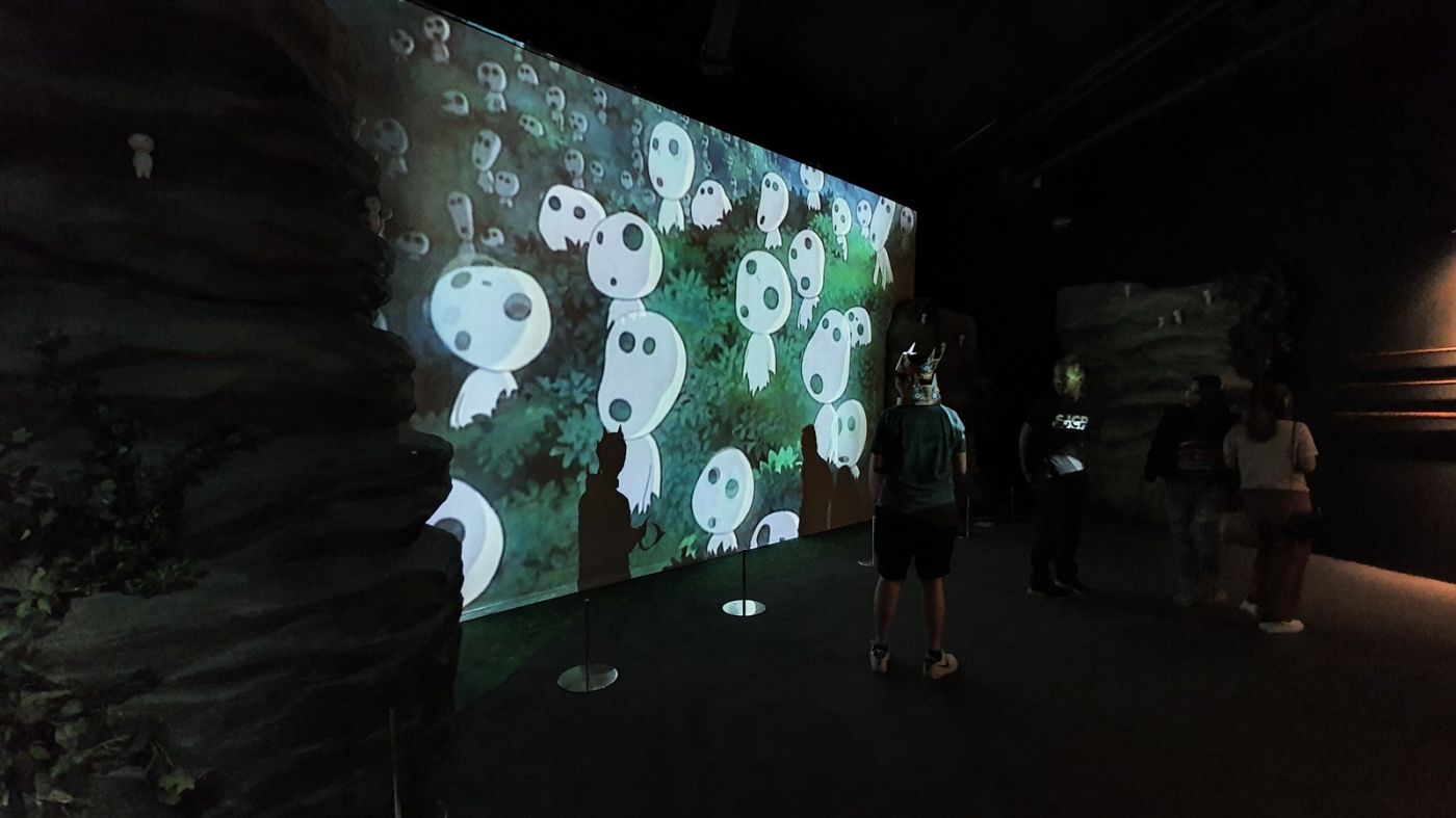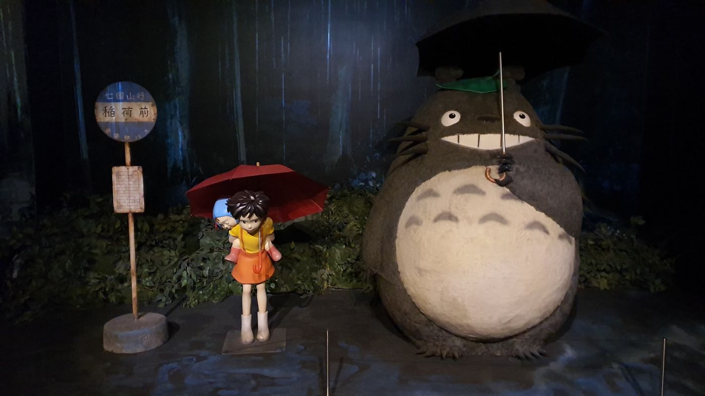 ระหว่างที่ยืนถ่ายแบคดรอปโตโตโระ พนักงานก็เดินมาช่วยถ่ายรูปให้ จนได้มา 2-3 รูป พอเข้าไปด้านในพนักงานก็จะให้ขึ้นลิฟต์แล้วเดินขึ้นบันไดไปอีกชั้น พื้นที่จัดแสดงจะแยกเป็นห้อง ห้องละเรื่อง และมีไม่ครบทุกเรื่อง ส่วนใหญ่เป็นเรื่องดังและเรื่องเก่า ๆ โดยเริ่มต้นจาก Pom Poko , Kiki's Delivery Dervice , Howl's Moving Castle , Porco Rosso , Princess Mononoke , Spirited Away ,Nausicaä of the Valley of the Wind และปิดท้ายด้วย My NeighborTotoro