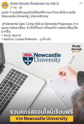งานเขียนบทความสั้นลงเพจเฟซบุ๊ก