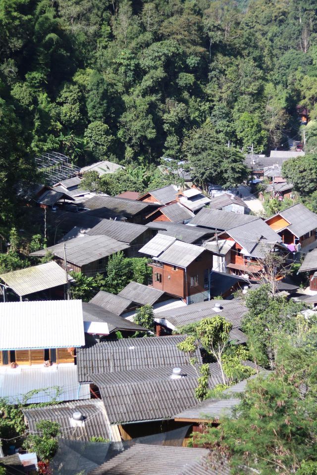 จริง ๆ แล้วการที่เรานั่งโง่ ๆ มองวิวหมู่บ้านแม่กำปองลงมาจากคาเฟ่แห่งหนึ่ง