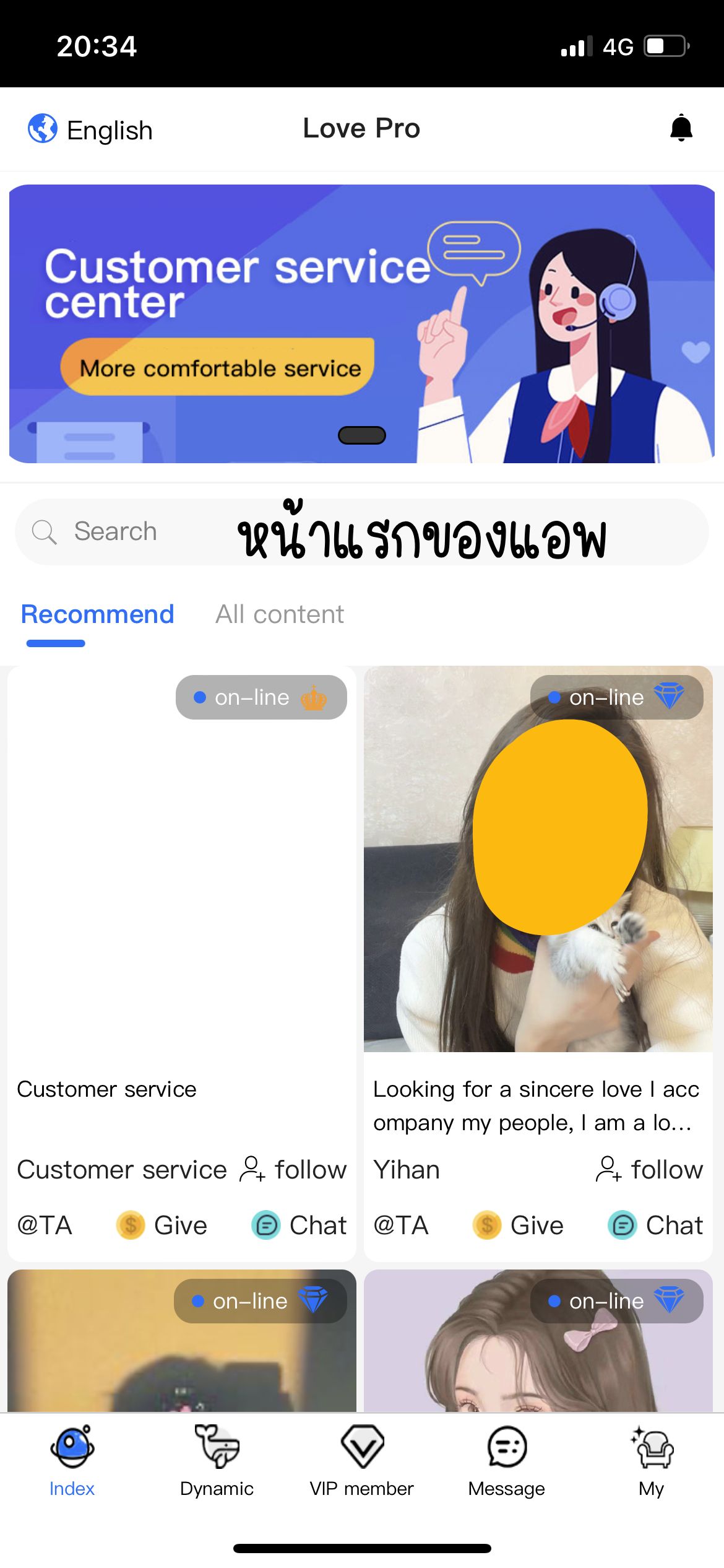 หน้าแรกของแอพจะเป็นอย่างงี้ แพลตฟอร์มง่ายๆ ไม่ยุ่งยาก มี Customer Service ตัวใหญ่ๆ เพื่อใช้หลอกเหยื่อให้ติดต่อไป