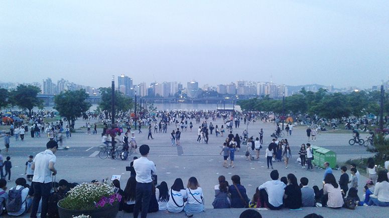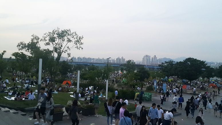 ด้วยความที่วันนี้เริ่มกิจกรรมก็ปาไปเที่ยงแล้ว ยามเย็นจึงมาเยือนเร็วมาก กิจกรรมช่วงค่ำพวกเราจะไปสวนที่ยออึยโดค่ะซึ่งวันนี้มีตลาดนัดอาหาร กะว่าจะนั่งกินพลางชมบรรยากาศพลาง