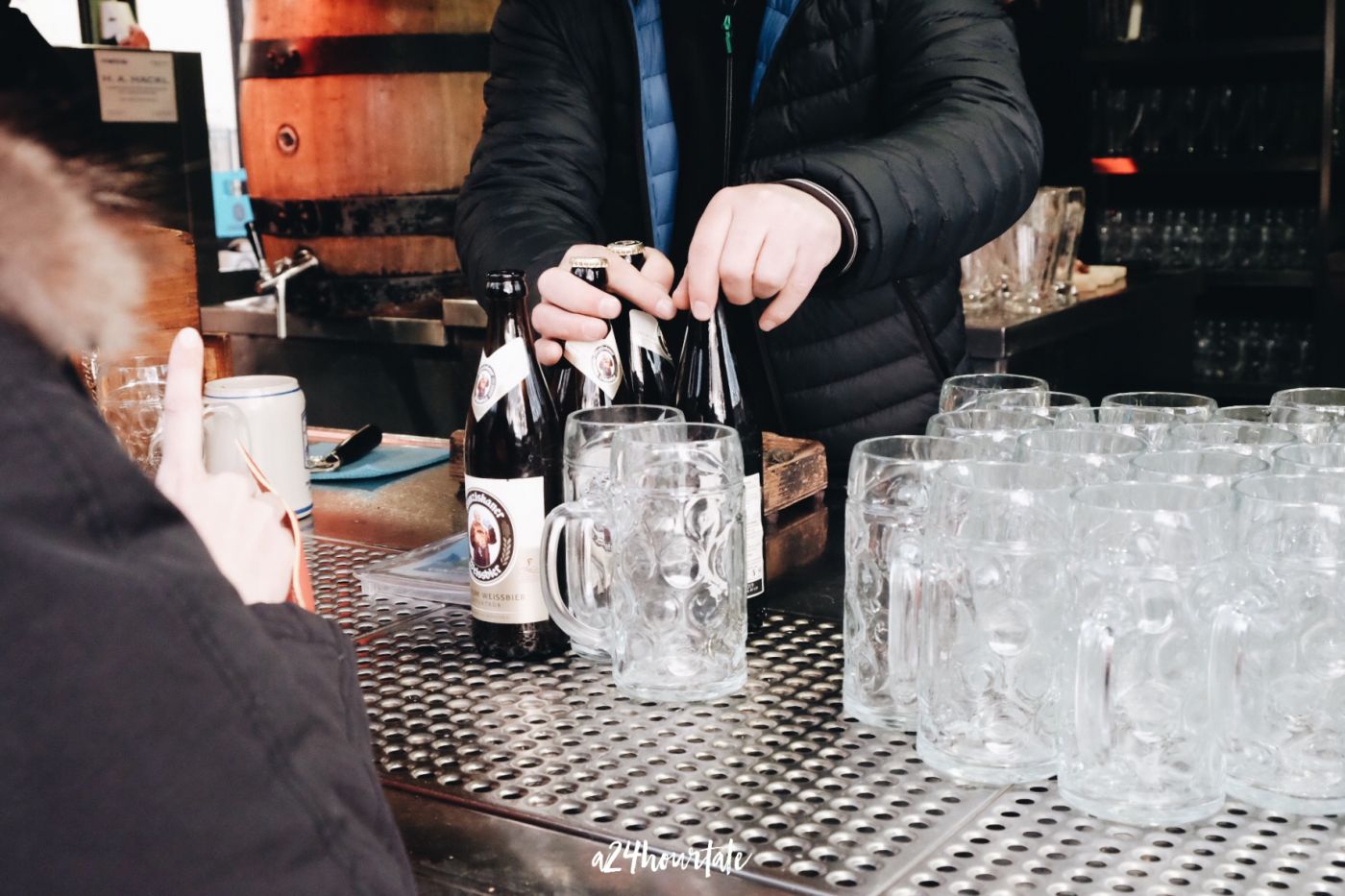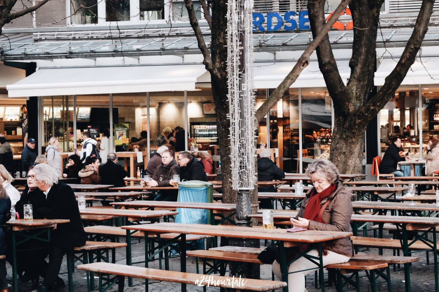 ลานเบียร์ที่เยอรมันกับลานเบียร์ที่ไทยก็ต่างกันมากกกกกกกก เค้าไม่มีดนตรีสด ของเค้าเป็นเหมือน outdoor market มีที่นั่งเยอะๆ เหมือนโต๊ะแคนทีนในมหาลัยล้อมรอบไปด้วยร้านอาหาร ร้านขายของร้านดอกไม้ ร้านขายไส้กรอก ร้านผลไม้