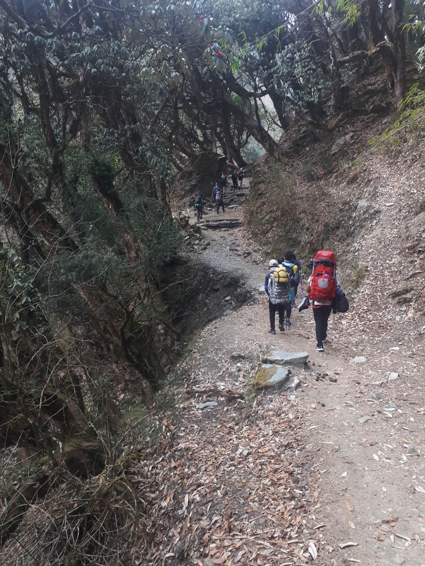 จำได้ว่า พอหมดวิวดอกกุหลาบพันปี เราก็เดินขึ้นลงเขาไปอีกหลายลูก เรามีอาการ AMS หน่อย ๆ รู้สึกว่ามีอาการคลื่นไส้และเวียนหัว คล้ายจะเป็นลมด้วย แต่โชคดีที่เป็นแค่แป๊บเดียว ตรงช่วงใกล้ลงเขา พอลงเขาก็อาการก็ดีขึ้นมาก ยังไม่ต้องถึงขั้นใช้ยาอะไร