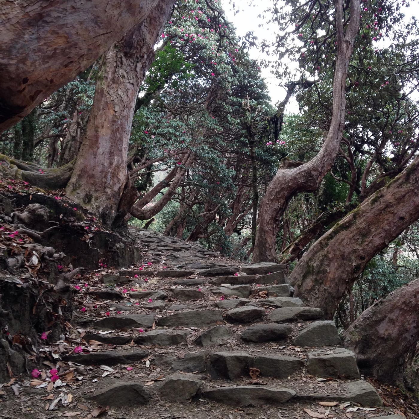 และบันไดหินแบบไม่รู้จบ เราเริ่มรู้สึกดีที่เลือกจ้างลูกหาบ ไม่ง้้นตายแน่ ๆ